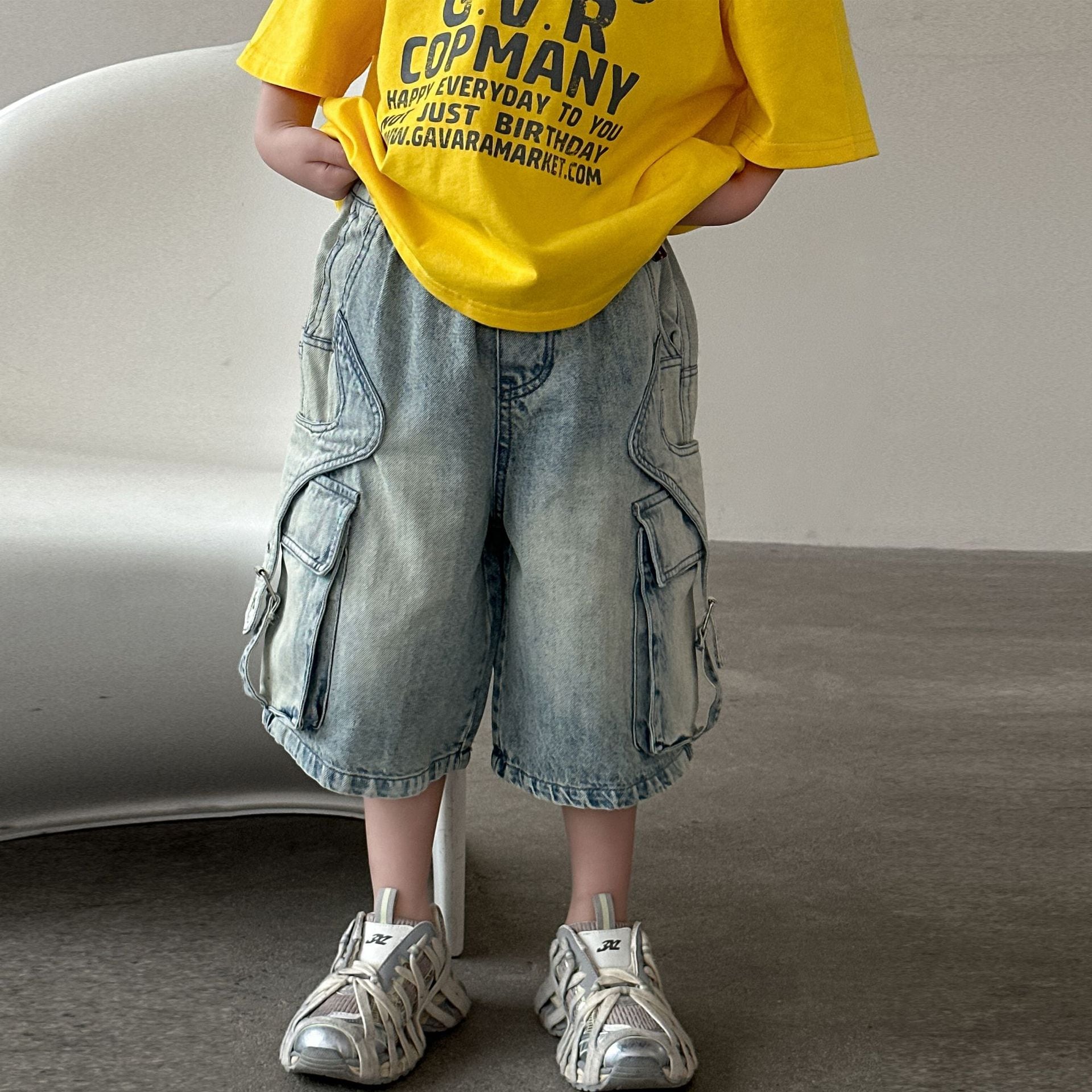 男の子用夏服デニムパンツ2025新型夏用薄手ミッドパンツ5分パンツゆったりジーンズ