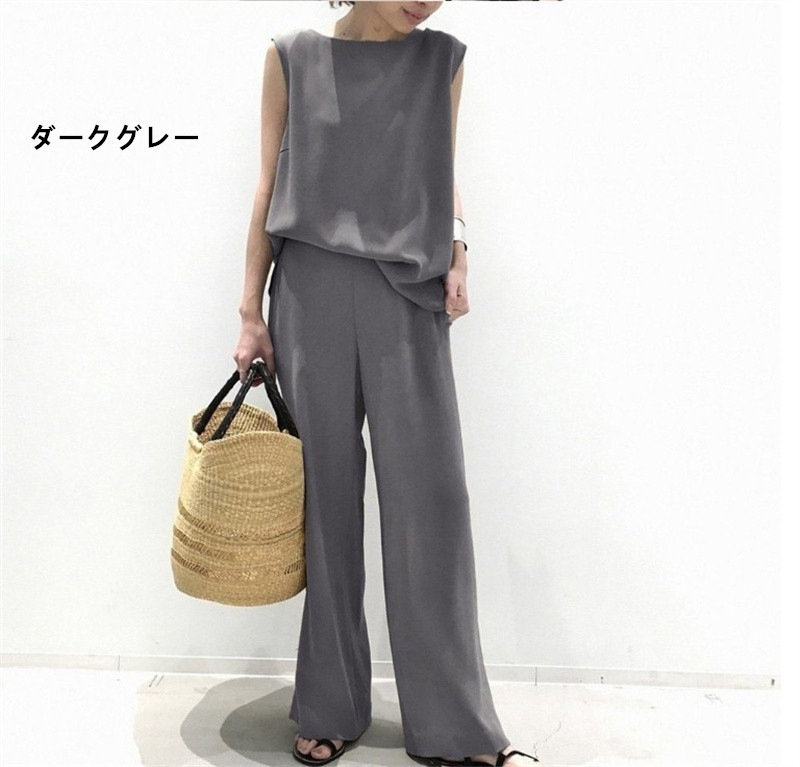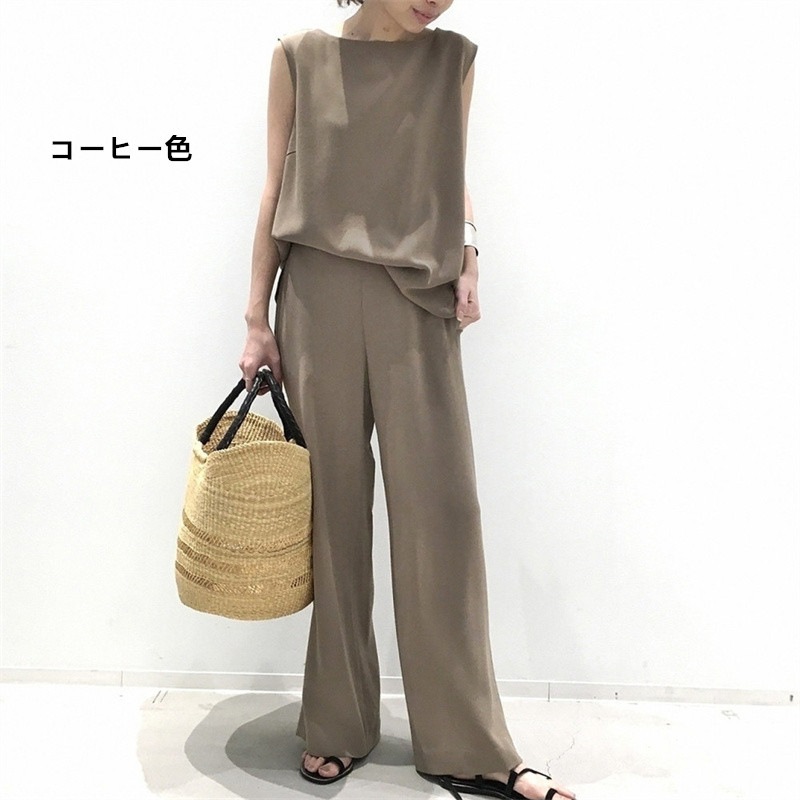 セットアップ レディース パンツスーツ パンツセットアップ 袖なし 2点セット トップス ボトムス 通勤 入学式 卒業式 オシャレ着痩せ