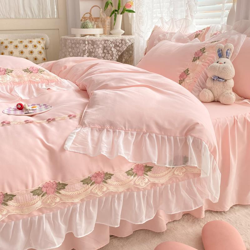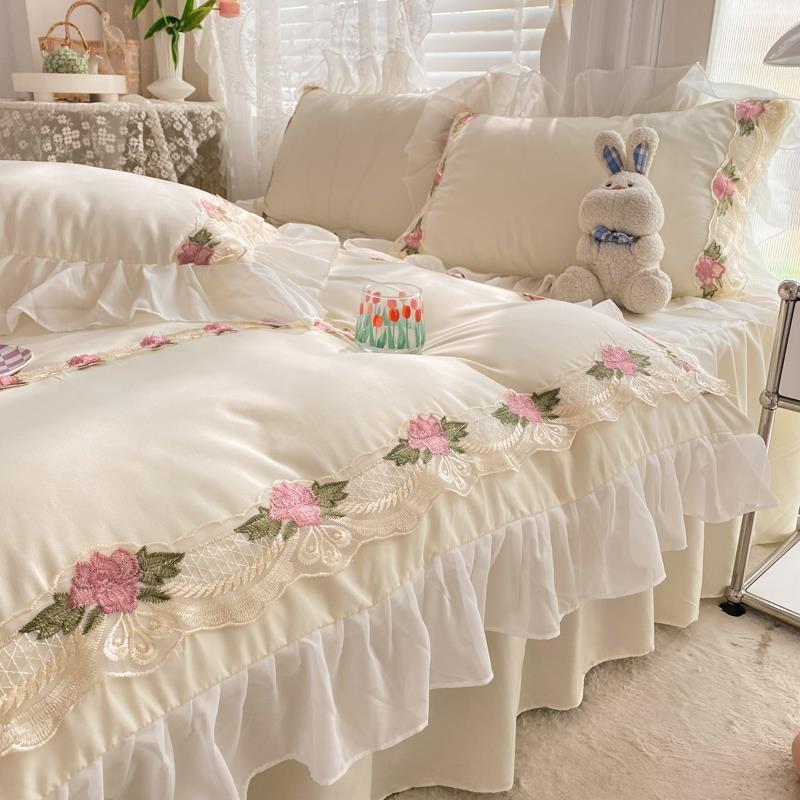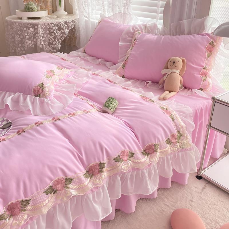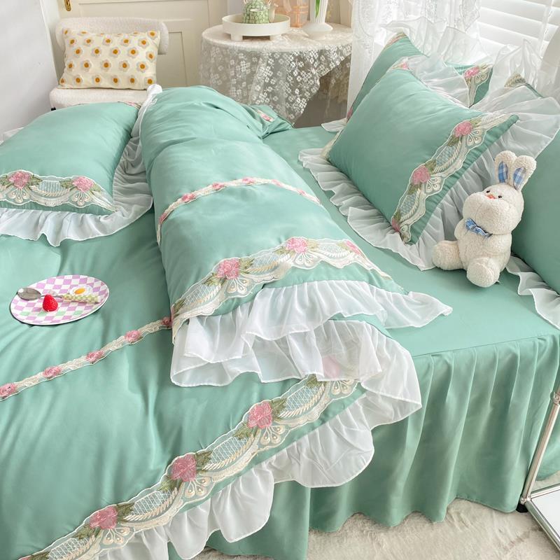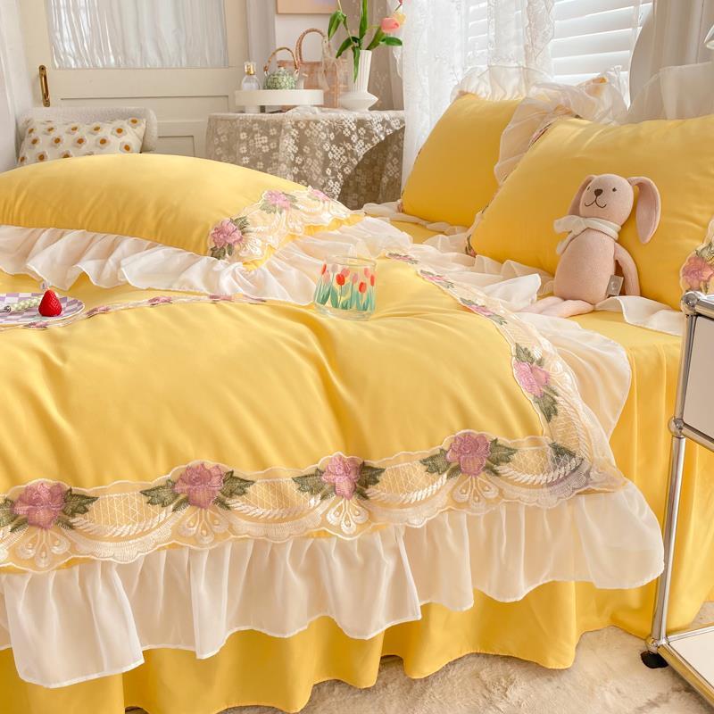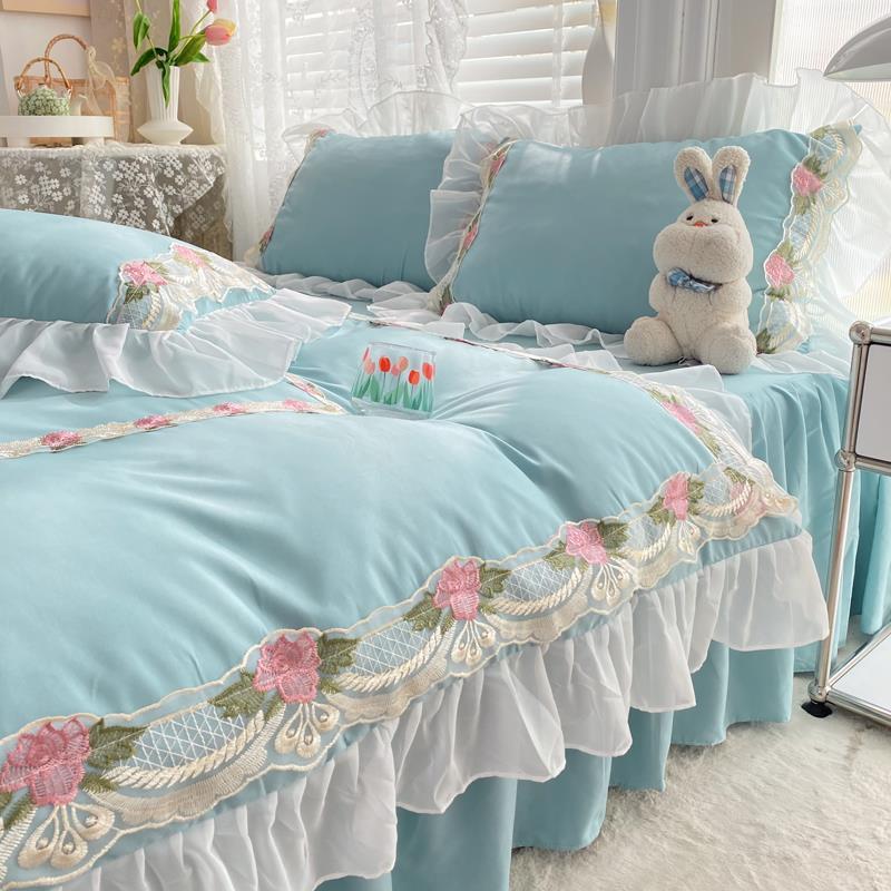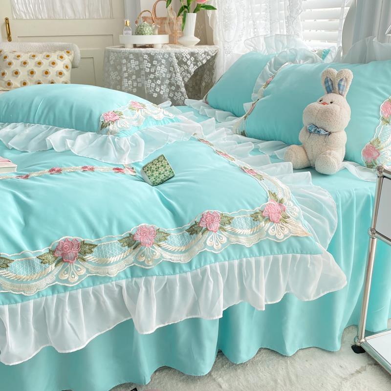 プリンセスベッドシーツ4点セットウォッシュドコットンベッドスカートドミトリーキルトカバーサマー3点セット