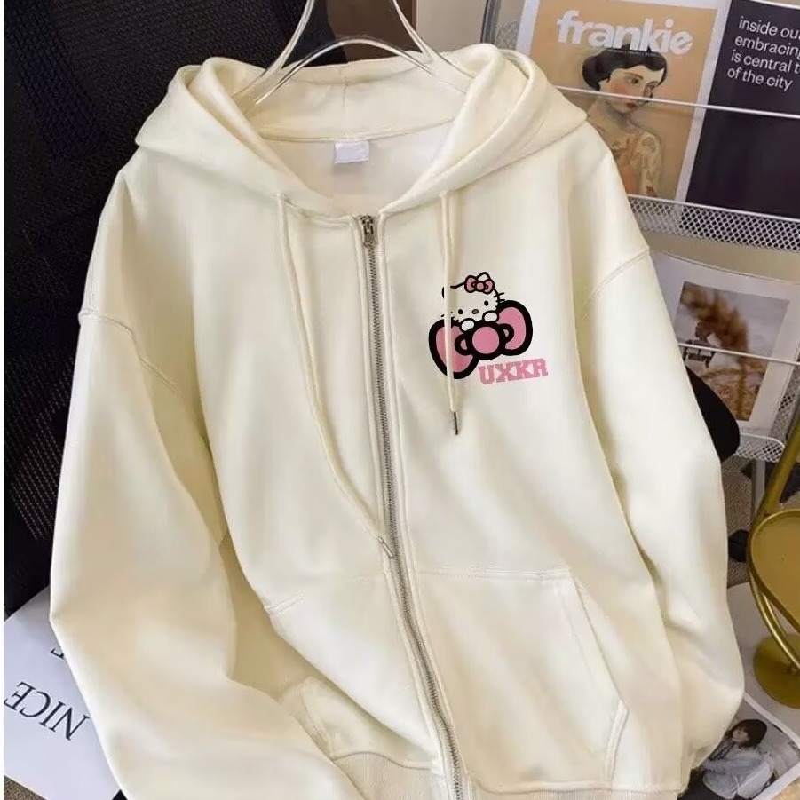 甘くて可愛い子猫の刺繍カーディガンフード付きスウェットシャツゆったりジャケット