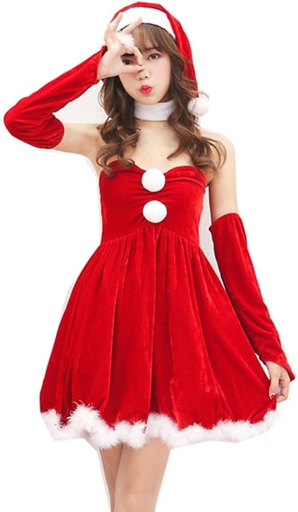 サンタ コスプレ レディース 赤白 ワンピース サンタガール 可愛い 女の子 メイド風 蝶結び クリスマス 衣装 3点セット 大人用 仮装 ふんわり クリスマス コスチューム 演出服 イベント パーテ