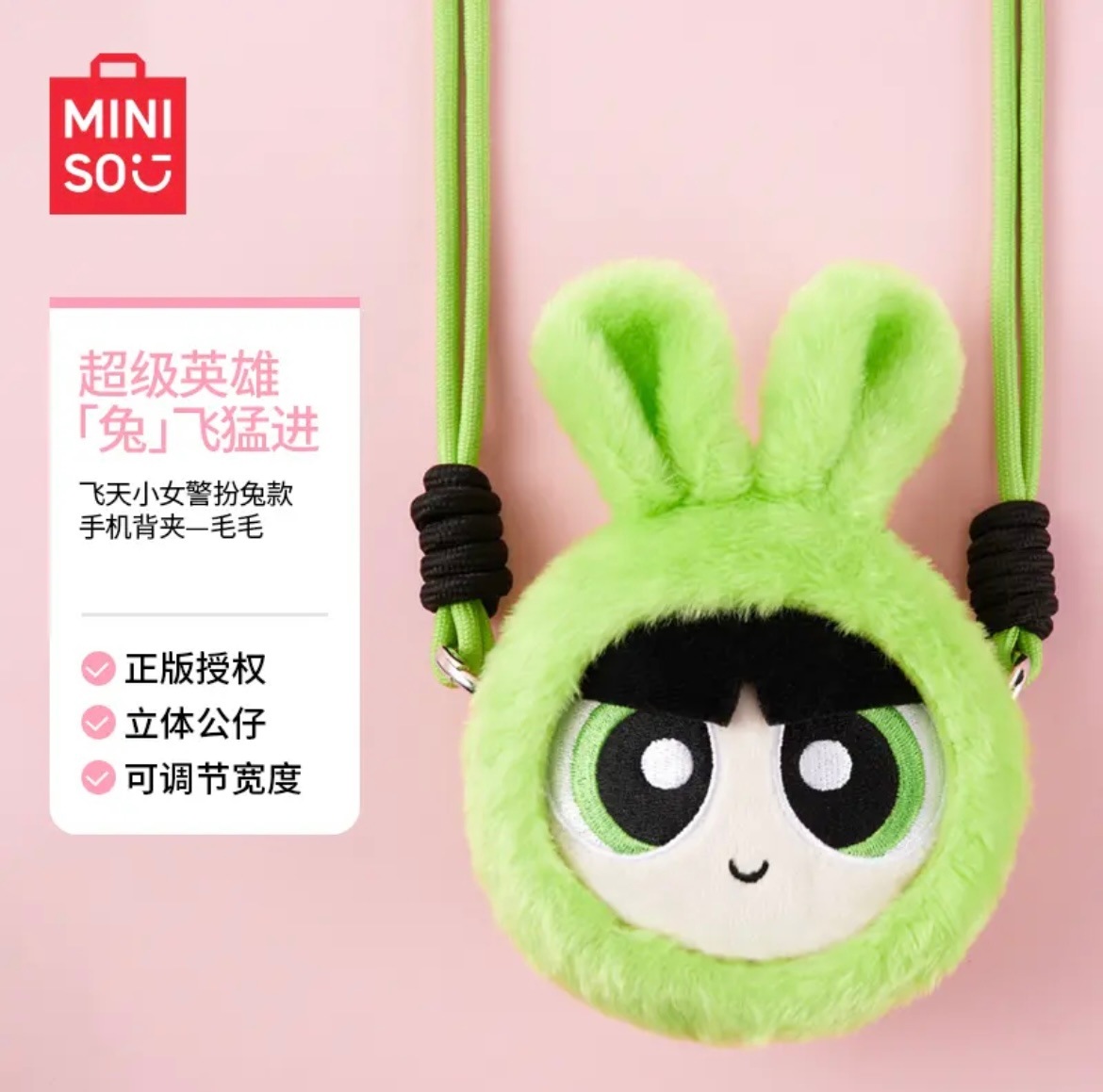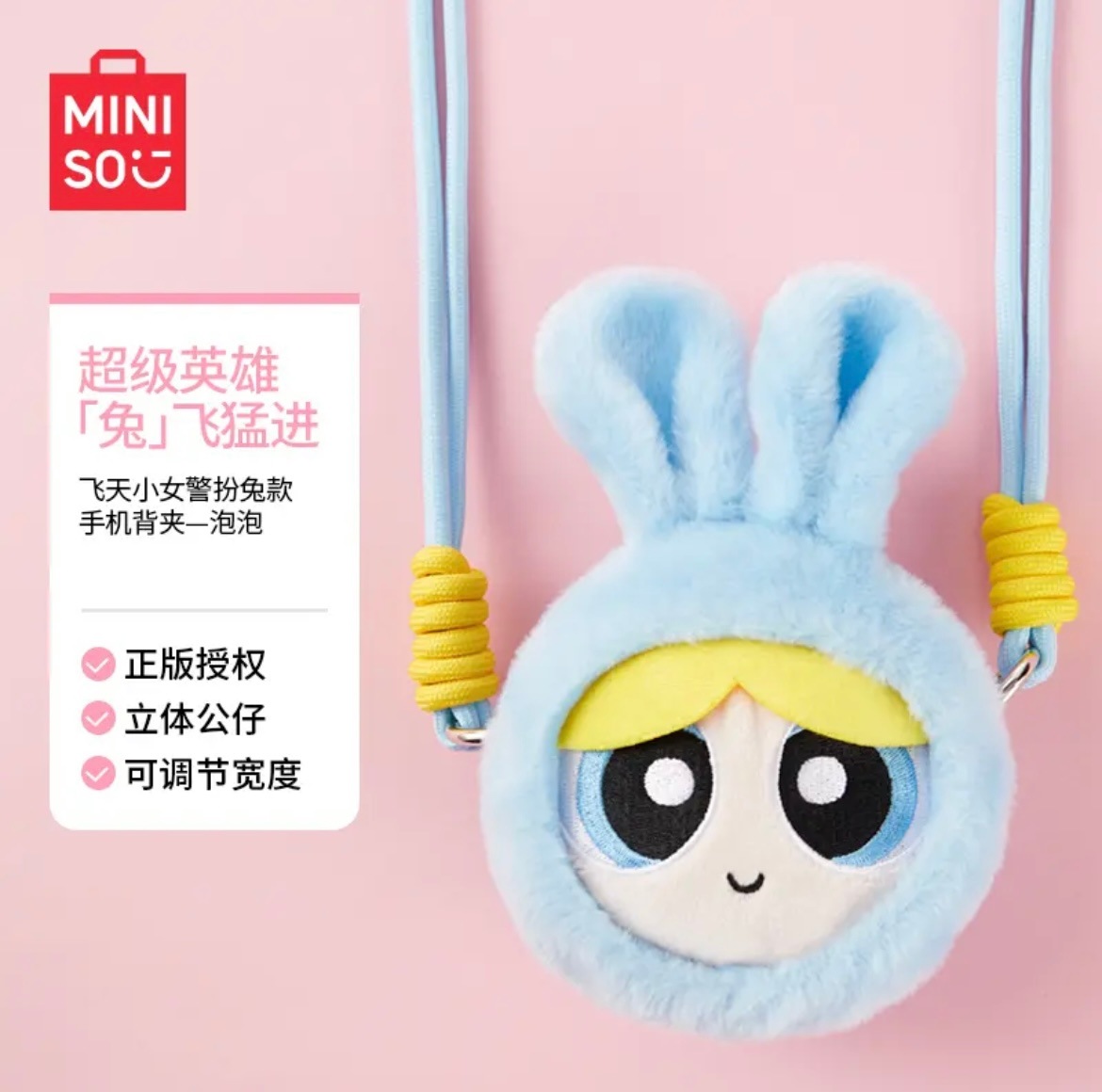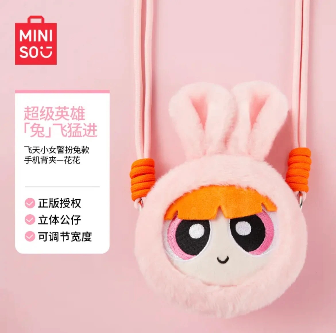 2025年新作 m i n i s o名創優品 パワーパフガールズシリーズのウサギの携帯電話バッククリップバッグポータブルかわいいバッグ