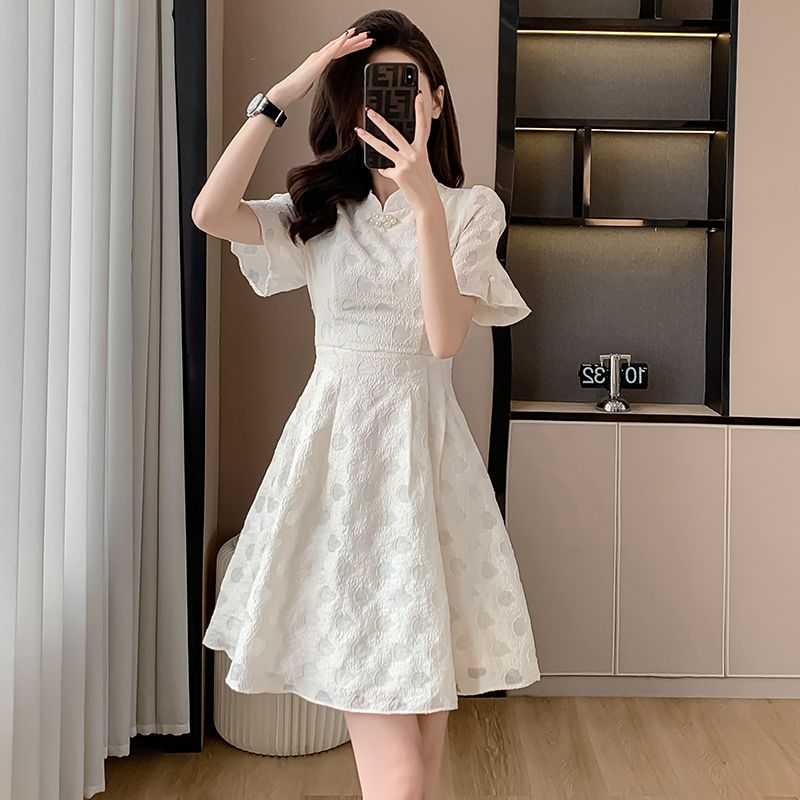 チャイナ風 ワンピース 夏新しい 改良 チャイナドレス スリミング 着痩せ 半袖ワンピース ウエスト引き締め 気質 ドレス Aラインスカート