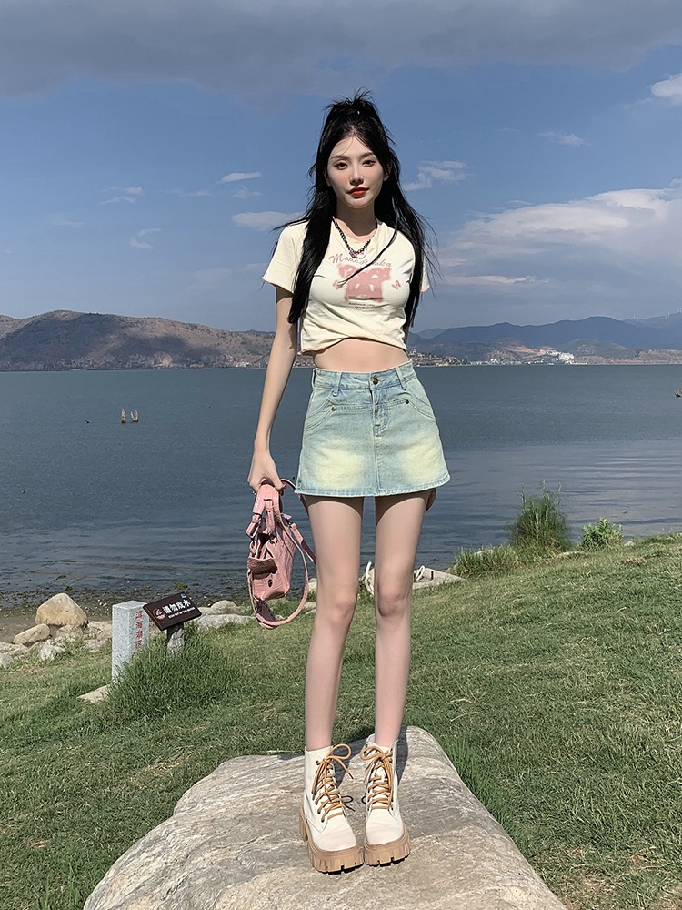 薄いブルーのデニムパンツ女性2025年夏新作ハイウエスト百合ファッション着やせギャルミニスカートパンツ