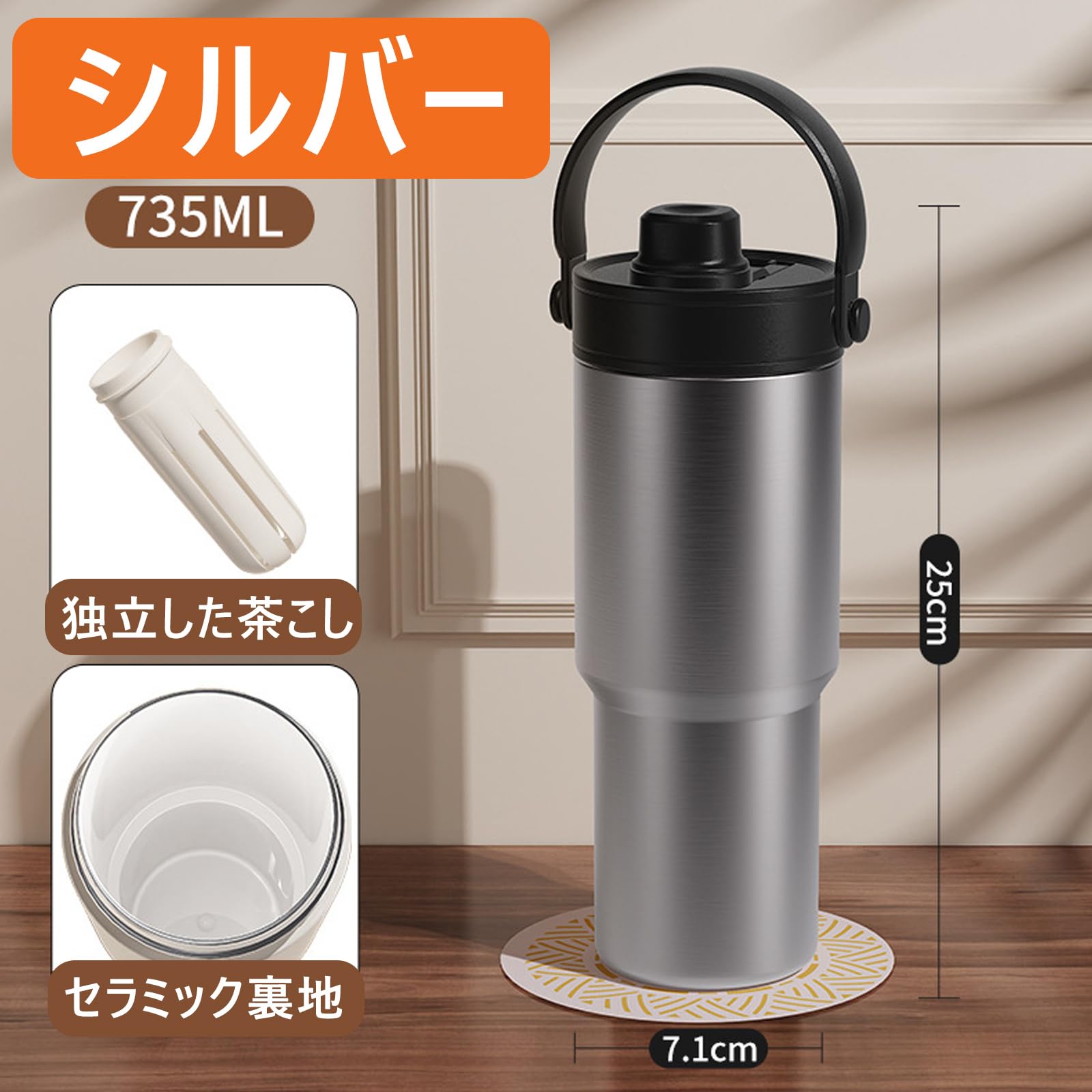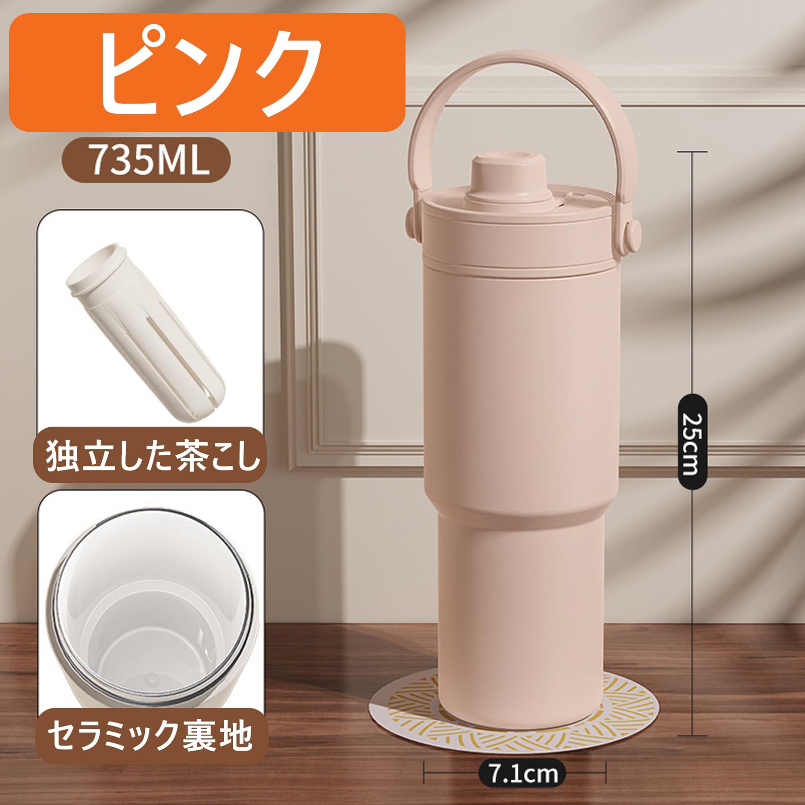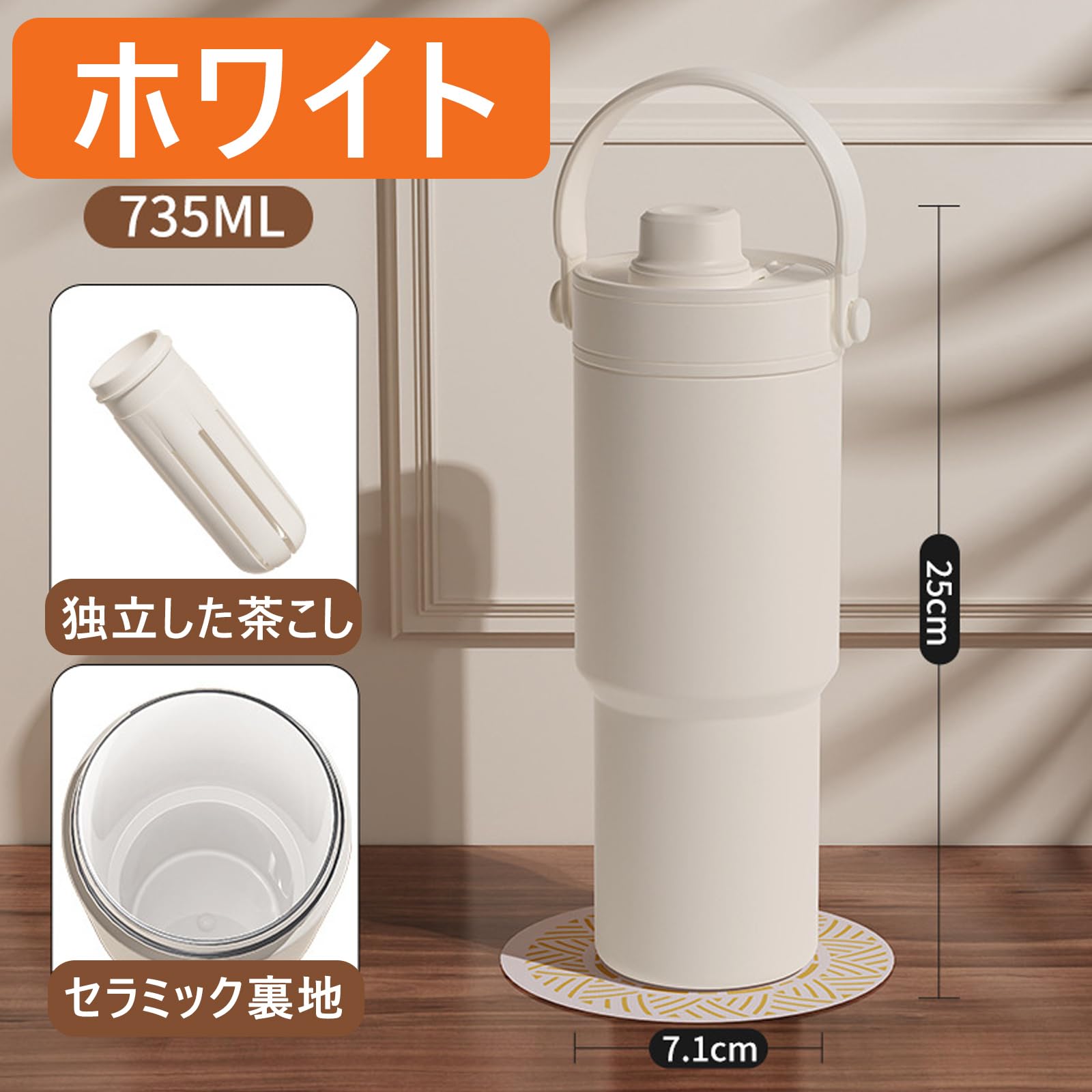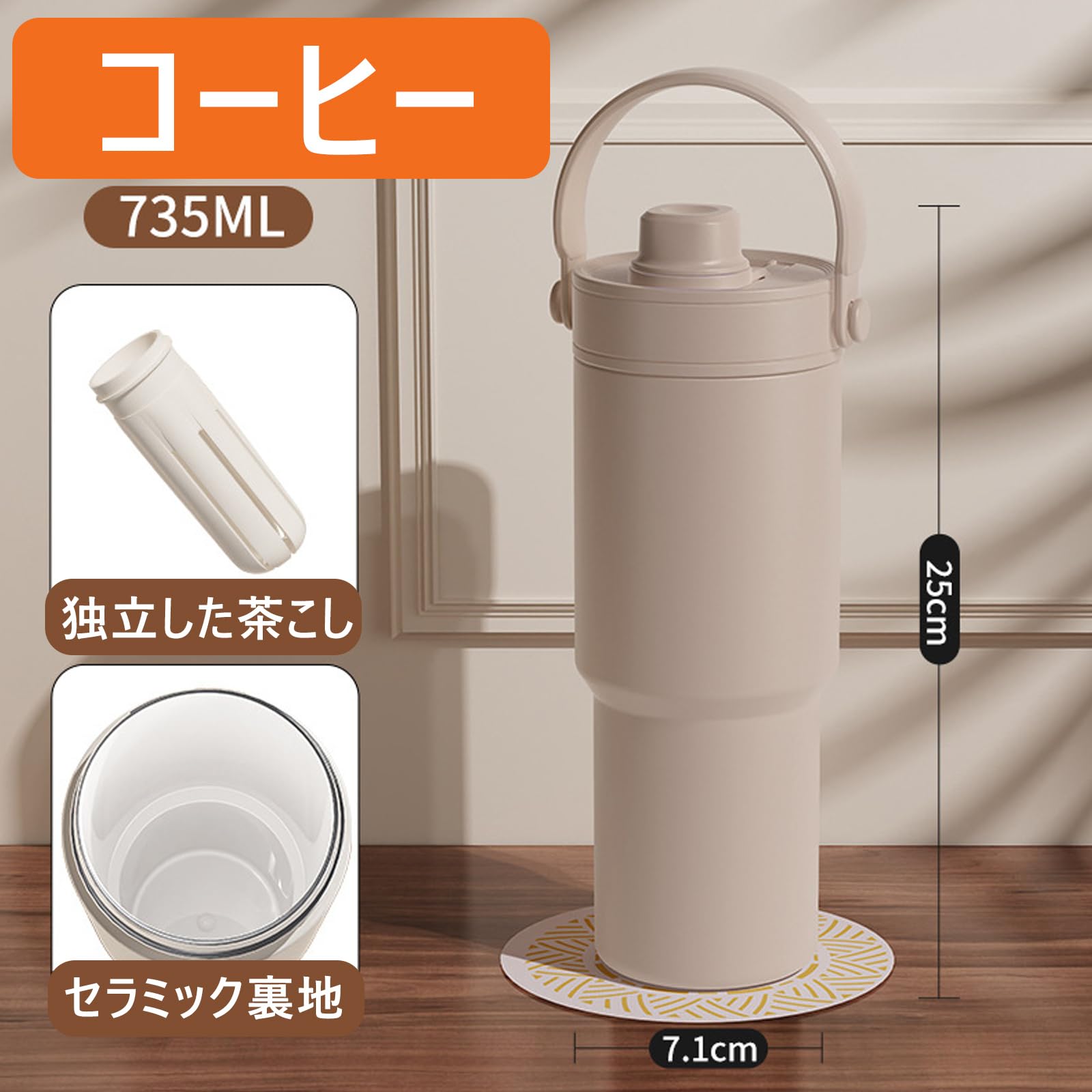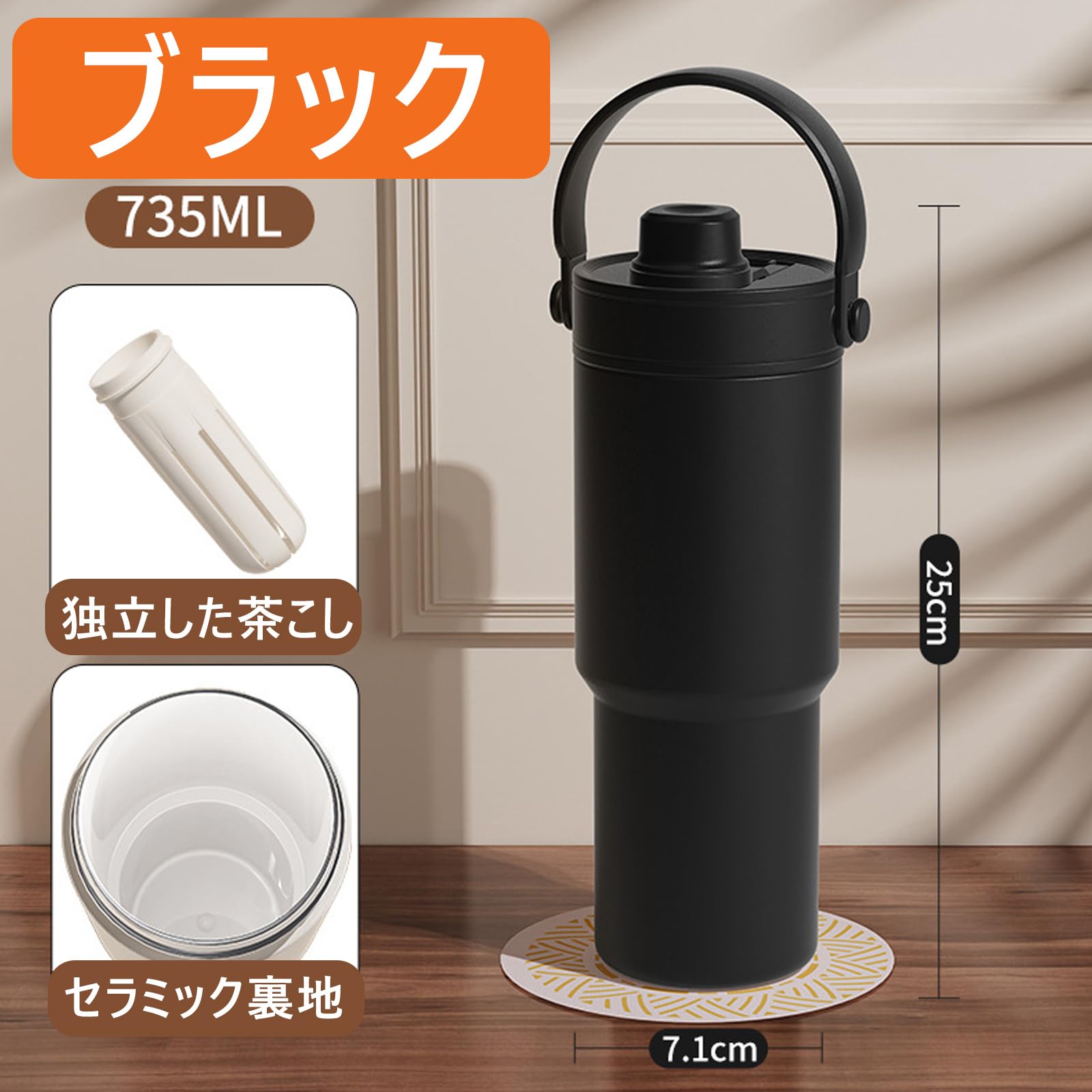 ストロー付き タンブラー 水筒 大容量 500ml/735ml ストロー付き水筒 こぼれない ウォーターボトル 保温保冷 真空断熱 コーヒーマッグ 漏れ防止 オフィス アウトドア キャンプ 車内用