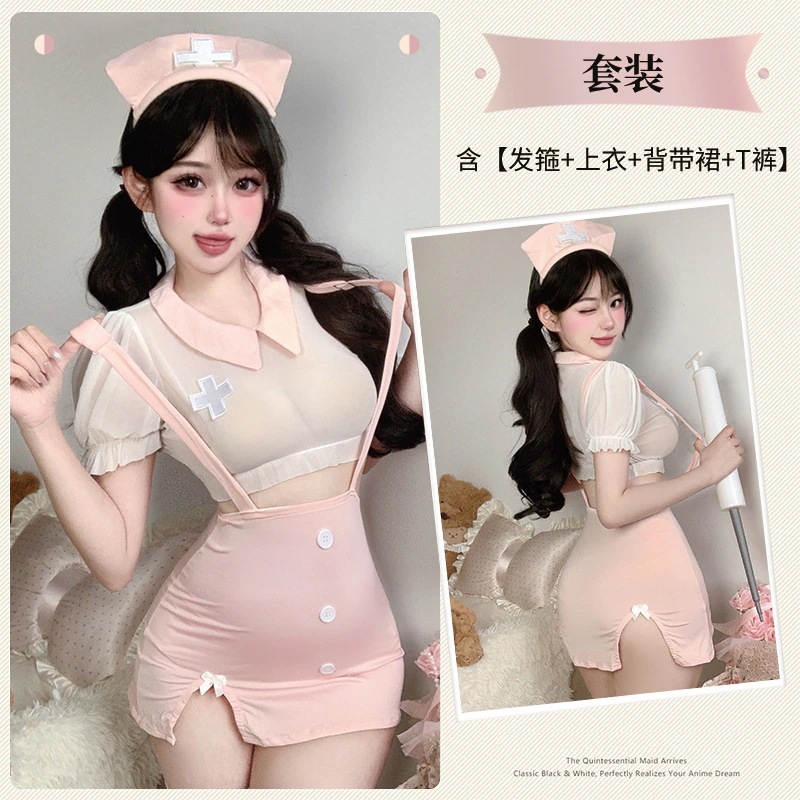 【 3日以内に出荷 】セクシーランジェリー 純欲 脱がずに誘惑 メイド 可愛いナースコスプレ 透け感 胸元露出セット セクシーランジェリー コスプレ