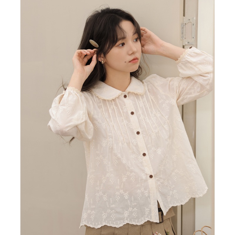 母の日春の新型版甘いジャカード刺繍人形襟上着小柄長袖シャツ女