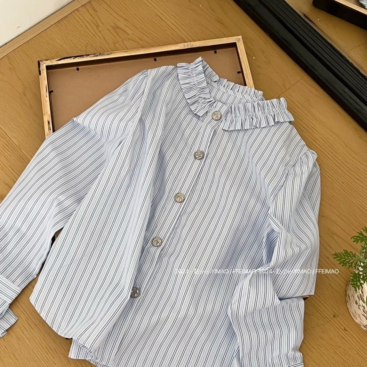 母の日商品春のデザイン感小衆宮廷の青いストライプの木の耳元のシャツ