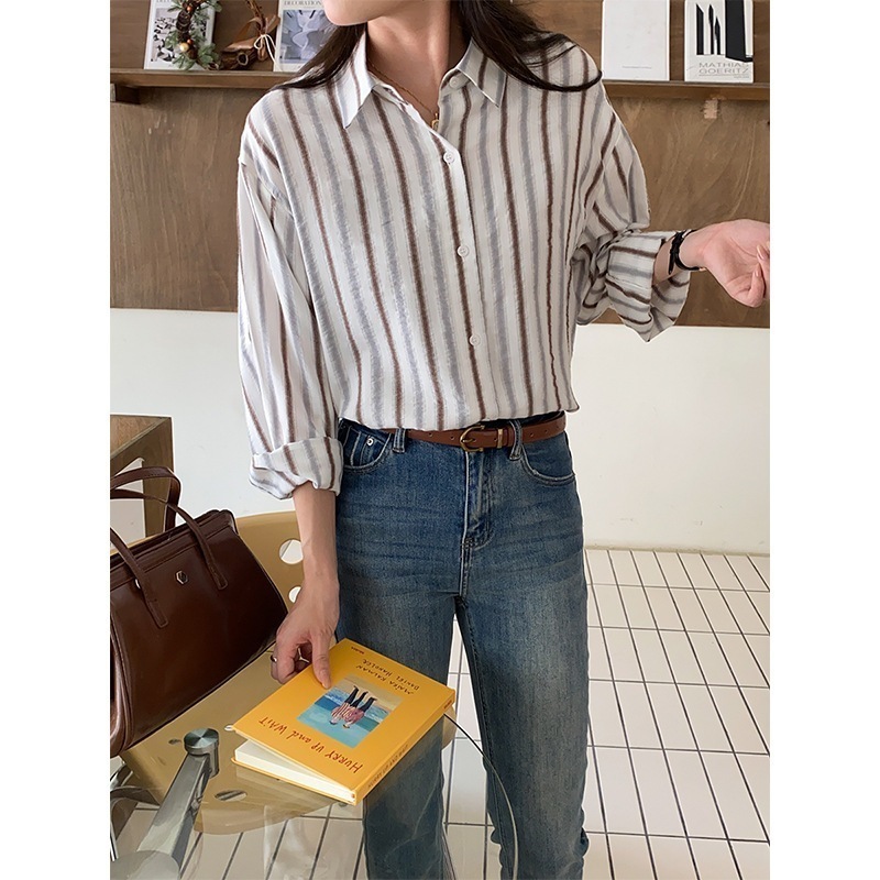 母の日フランス式怠惰な知識人風早秋レジャー通勤衝突色長袖シャツ