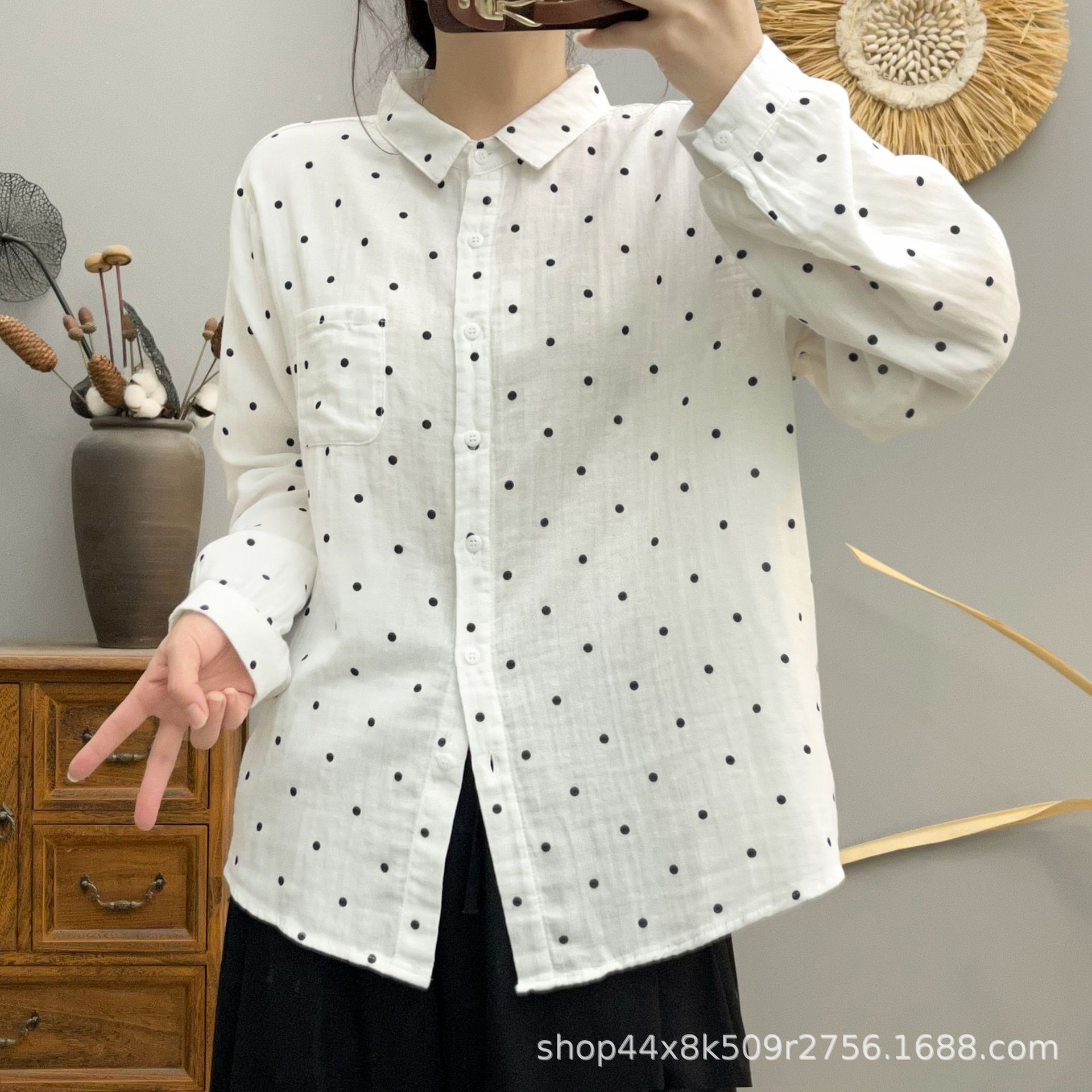 母の日秋の新シャツ長袖点プリント学院風二重糸長袖ゆるいカジュアル上着