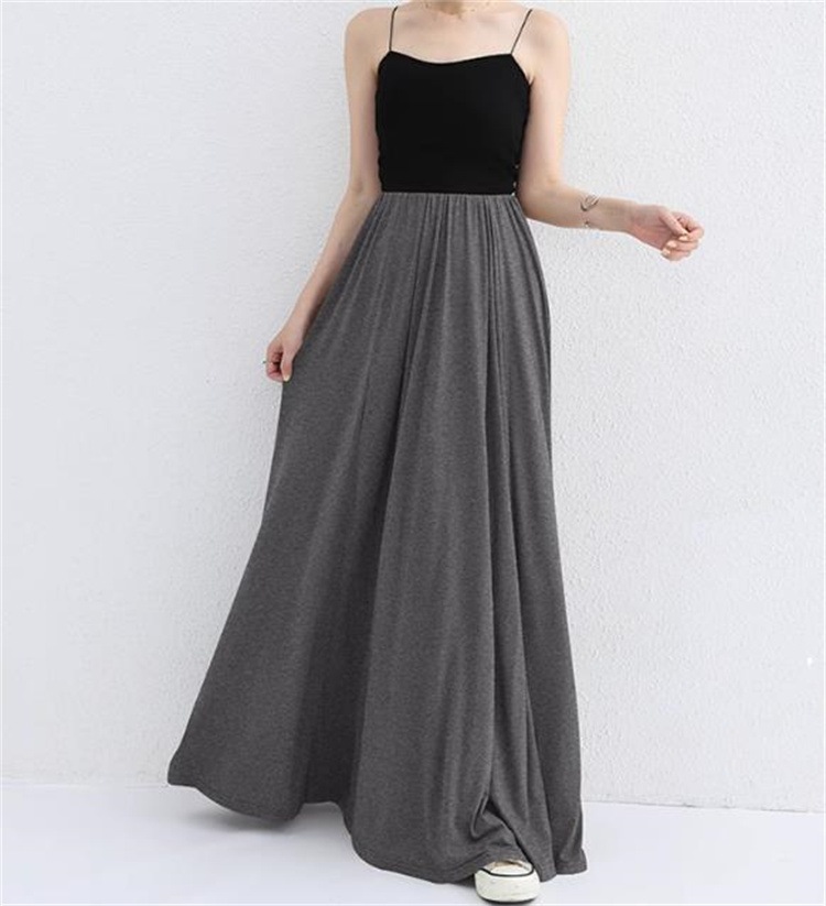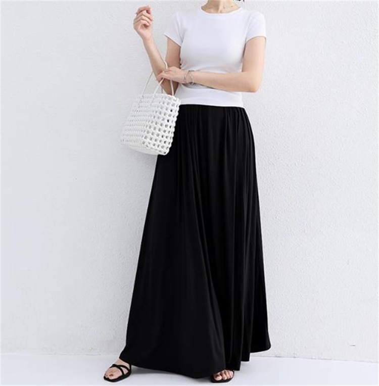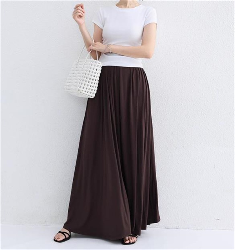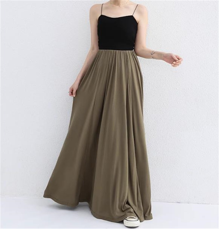 現代激安セール ハイウエスト プリーツ ロングスカート 薄手 ソリッドカラー ゆったり 大胆なA字デザイン