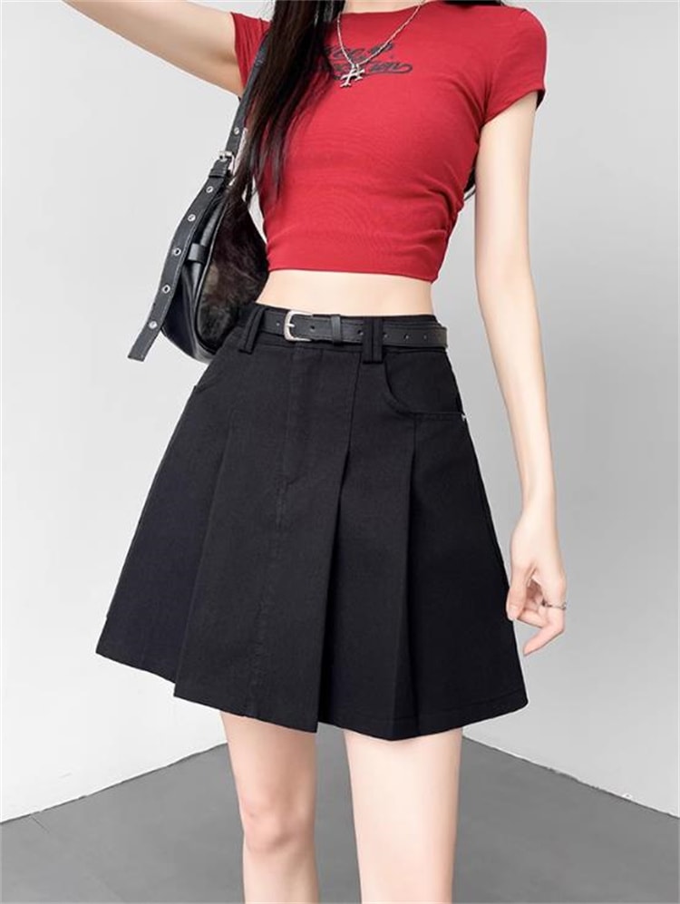 現代激安セール プリーツスカート 2025年夏新作 高腰Aライン シェイプアップ 防透け設計 ヒップカバー ショートスカート