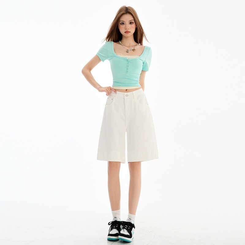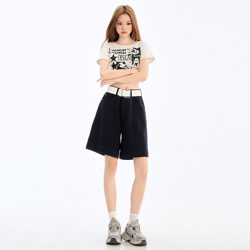 水洗ブルーデニムワイドパンツ女性2025年夏新品ゆったりスリム外履きストレート中パンツ