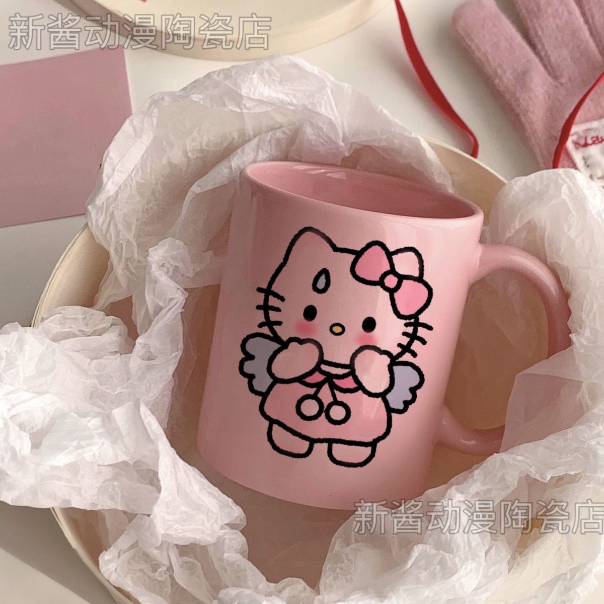 漫画ハローキティ ピンクセラミックカップカップinsマグカップ可愛い 可愛い セラミック蓋付き誕生日プレゼント