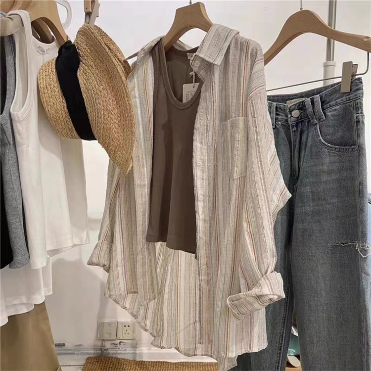 現代通勤する 2025年春夏 レトロストライプ コットンリネン シャツ ラフシルエット 显瘦効果 長袖 レディース