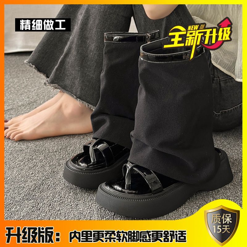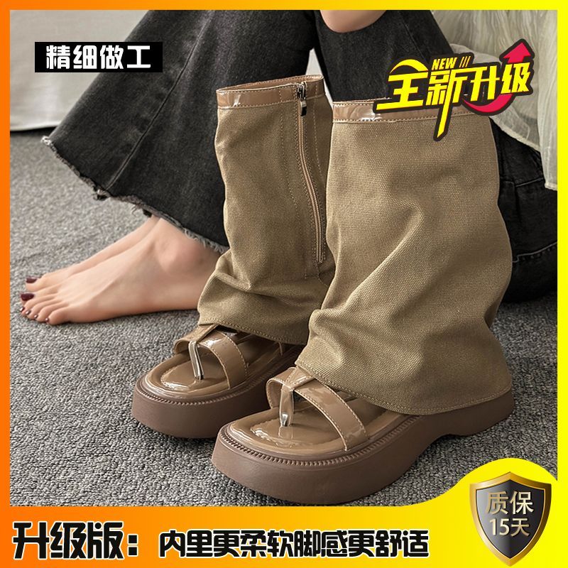 パンツブーツ!夏の新作サンダル女性の厚底が高くなったローマ靴のつま先レトロなブーツショートブーツ