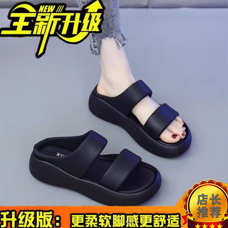 夏のアウターに新型厚底で踏み糞感アップビーチサンダル女の超軽量パン一文字曳女