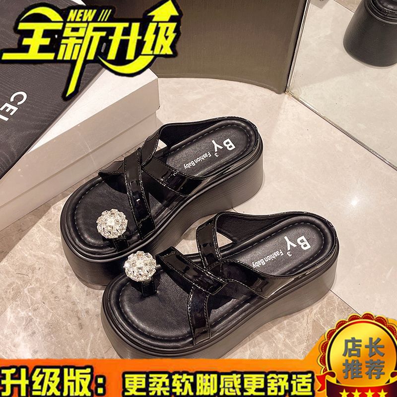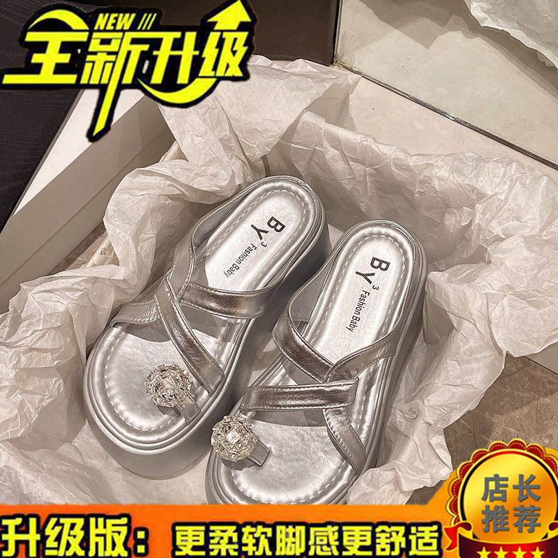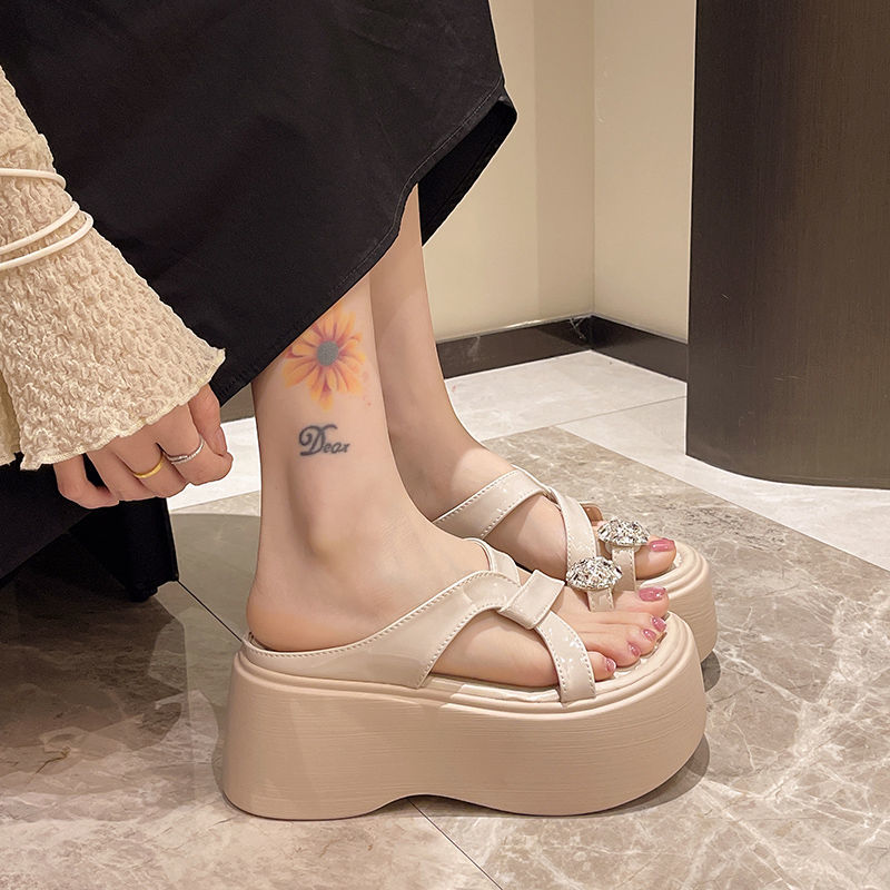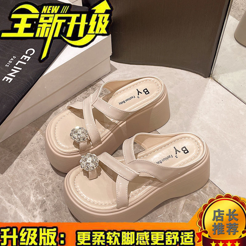 夏の厚底ビーチシューズを履いて足指マドレーヌとラインストーンサンダルを履く仙女風の新モデル