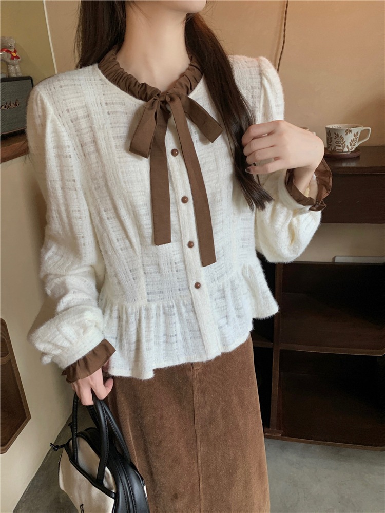 母の日フランスのレトロなデザイン感が色にぶつかった丸襟系シャツ女装春冬レースシャツ上着トップスシャツブラウス