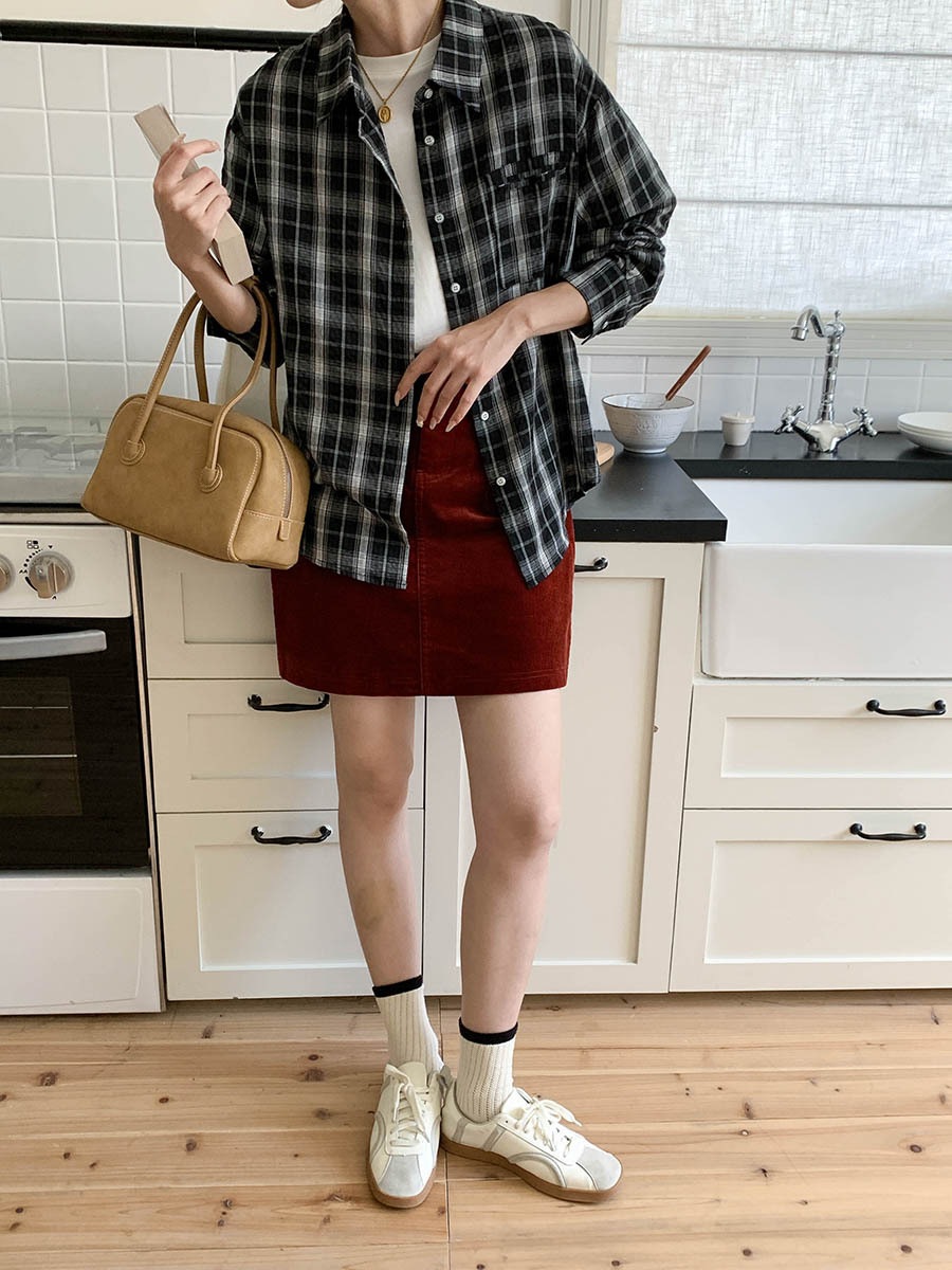 母の日リラックスした怠惰な風泡綿レトロなチェックシャツ早秋新2026トップスシャツブラウス