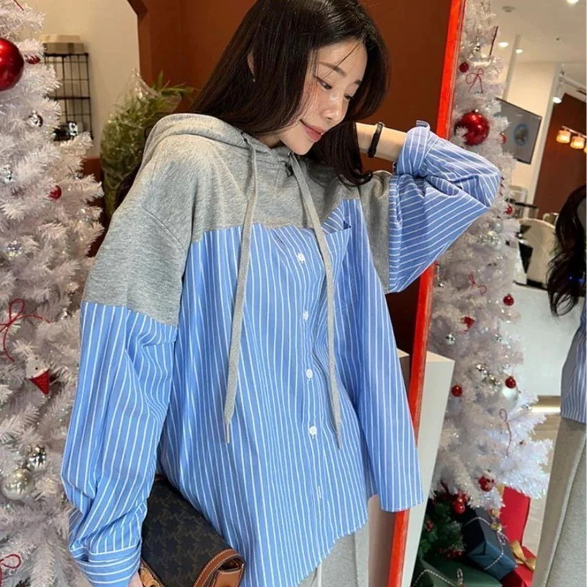 母の日2024春ののデザイン感が流行的で個性的な大衆がゆったりとした怠惰なシャツを2枚持っているトップスシャツブラウス