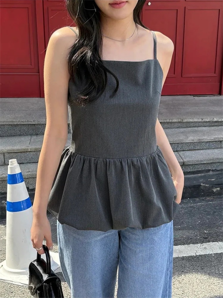 現代通勤する 夏用シンプルデザインセクシーストラップバック露出カットソー