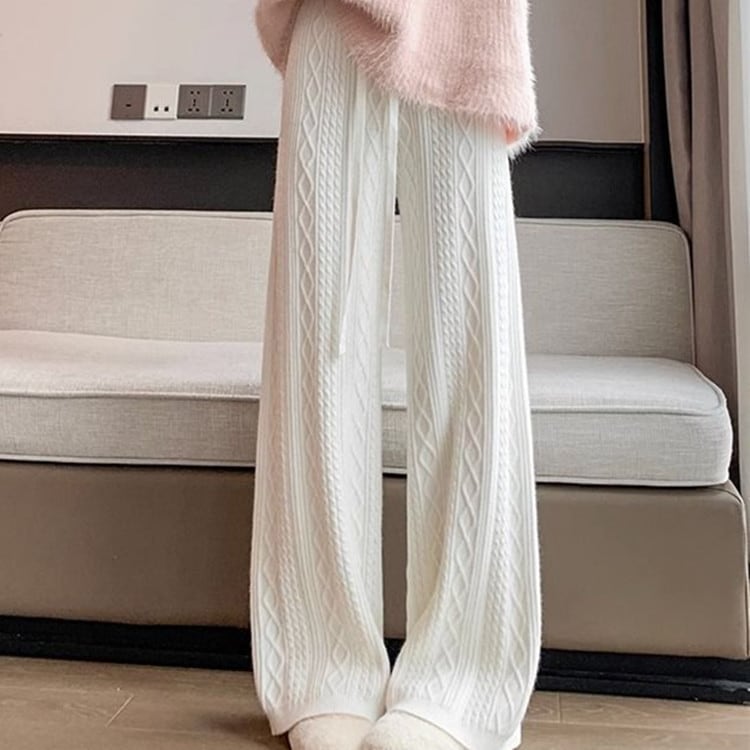 母の日ニットのワイドパンツ女性秋冬タイプの怠惰で柔らかいもち米パンツは腰が高くて痩せている感じがします