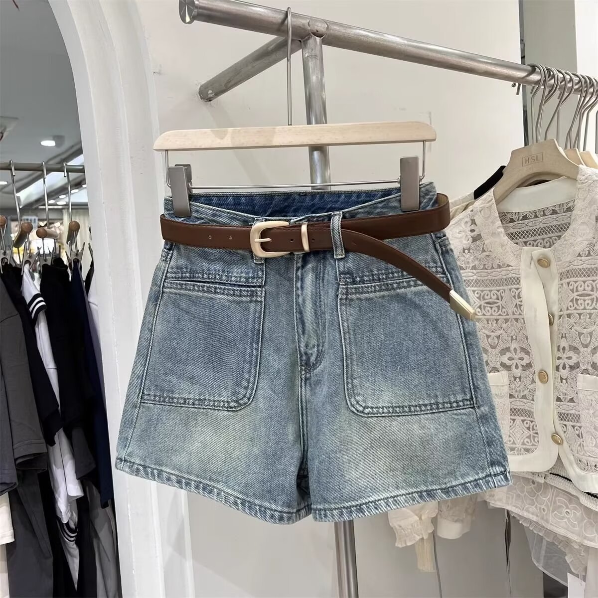 母の日商品夏の青い水洗いレトロa字デニムショートパンツ女性の新しい小柄な高腰ホットパンツ