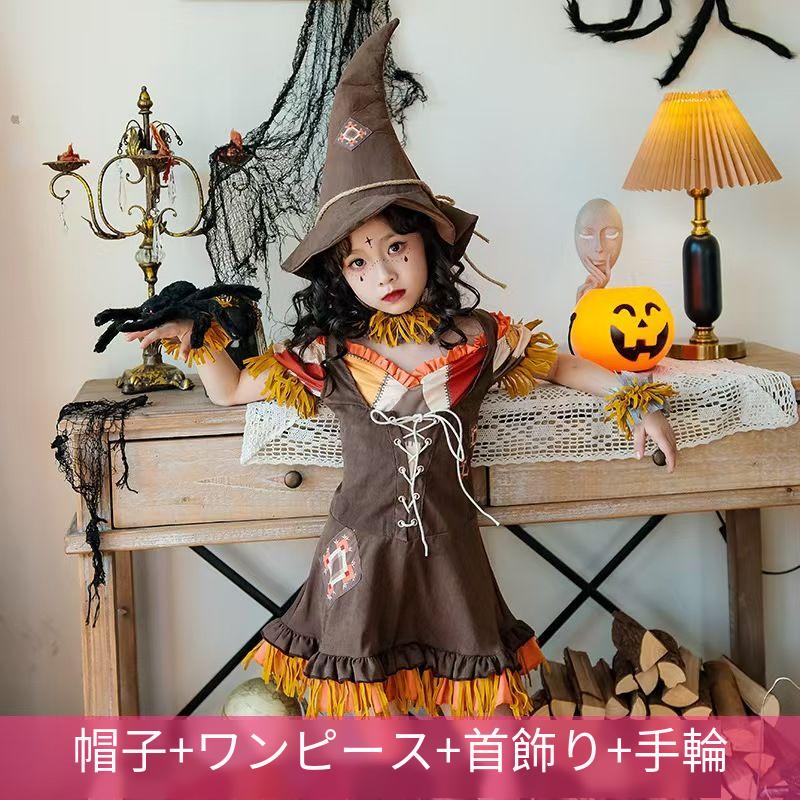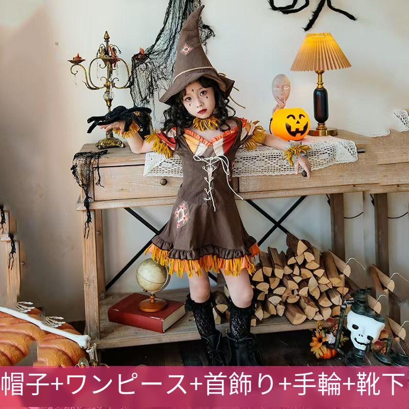 [2枚購入で2OO円OFF]今買いたいが特惠!cosplayハロウィン子供コスチュームカボチャ魔女かかしドレスベビー服女子牧歌的なスタイルハーレークイン万聖節