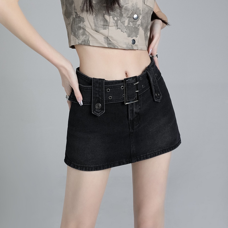 ブルーデニムスカート女2025年夏新作ハイウエストA字スリムレトロな裏地ギャルスカート
