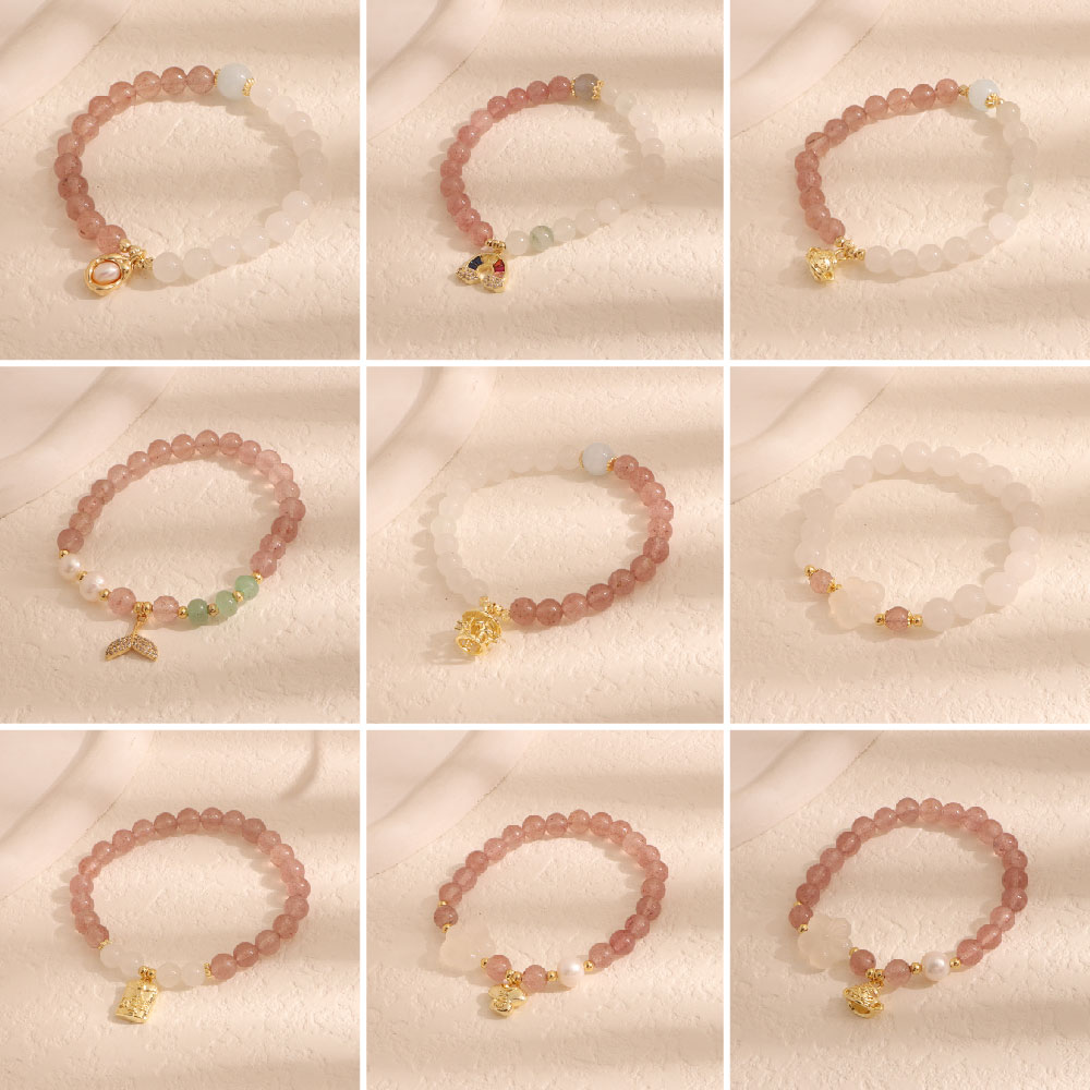 天然石 ブレスレット 6mm ストロベリークォーツ 天然石ブレスレットパワース トーンブレスレッ ス アクセサリー 贈り物 ギフト 祝日