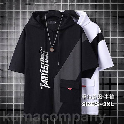 【タイムセール】記念日にtシャツ メンズ 無地 シンプル フード付き パーカー トップス 重ね着風 オーバーサイズ 七分袖 ユニセックス 通勤 通学 春