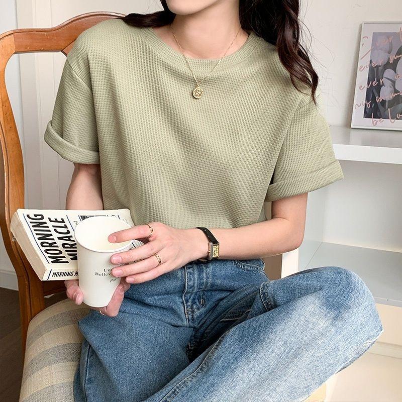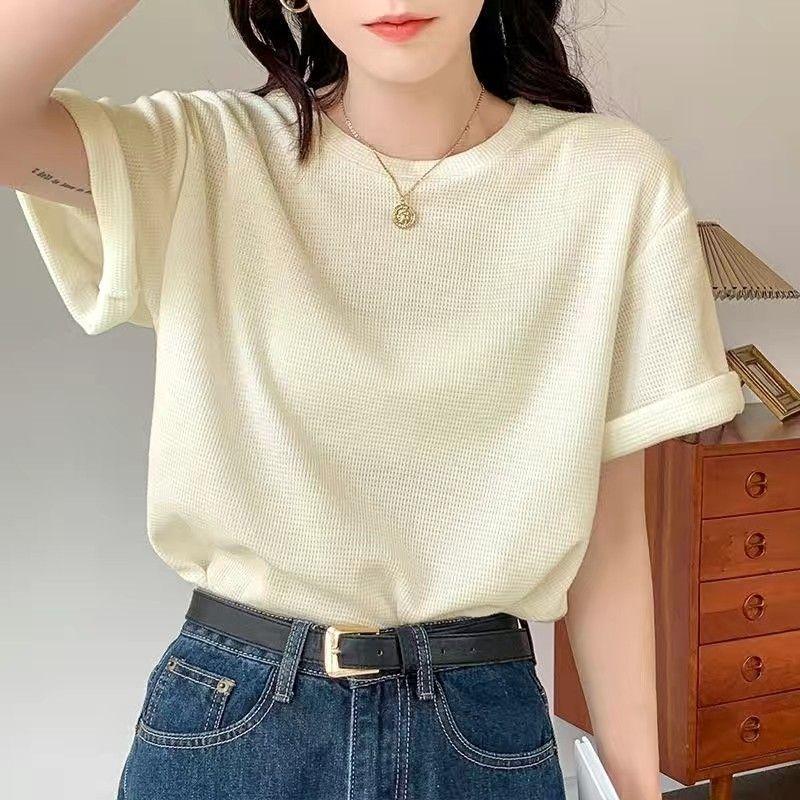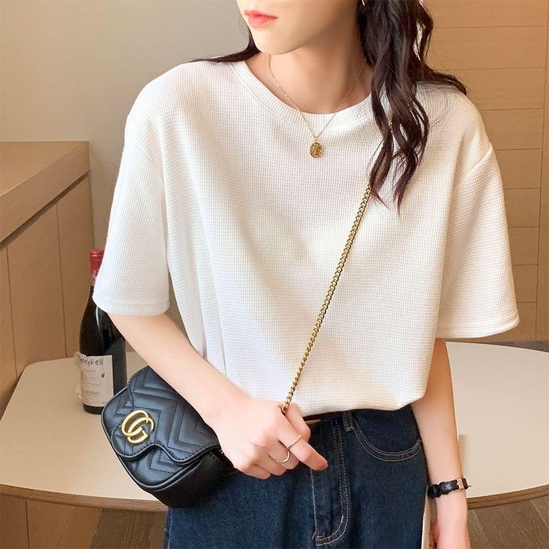 半袖tシャツ トップス クルーネック ワッフル 半袖 tシャツ 新作 トレンド カットソー シンプル きれいめ 無地 薄手 春夏 プルオーバー ゆったり 春