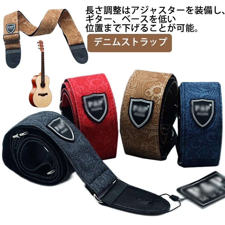 ギターストラップ ベースストラップ デニム ストラップ 花柄 ギター ベース用 ストラップ お洒落 ギター ベルト 肩掛けベルト 楽器用 長さが調節できる バンドマン ミュージシャン 音楽家 プレゼン
