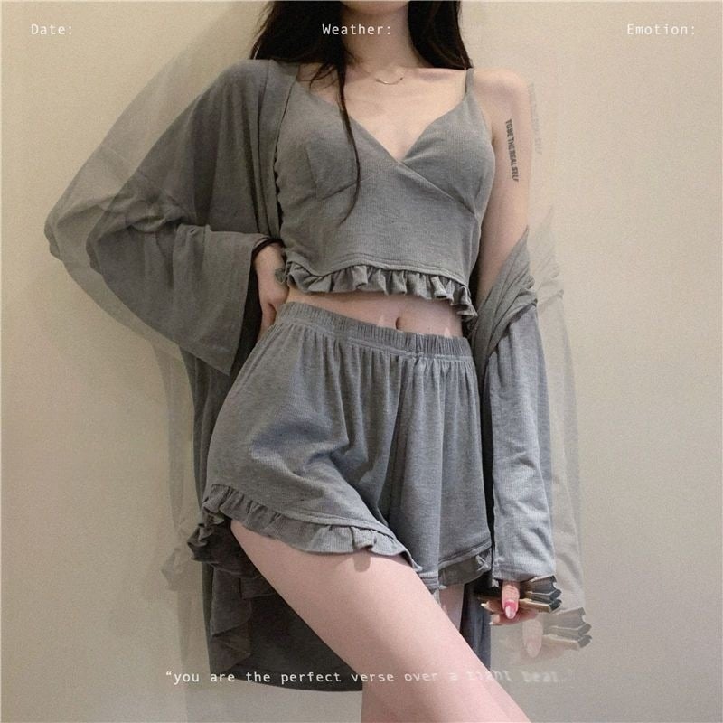 三点セット 夏 ルームウェア セットアップ セクシー キャミソールパジャマ レディース お肌に優しい快適 薄 部屋着 可愛い 韓国 カップ付き ルームウェア