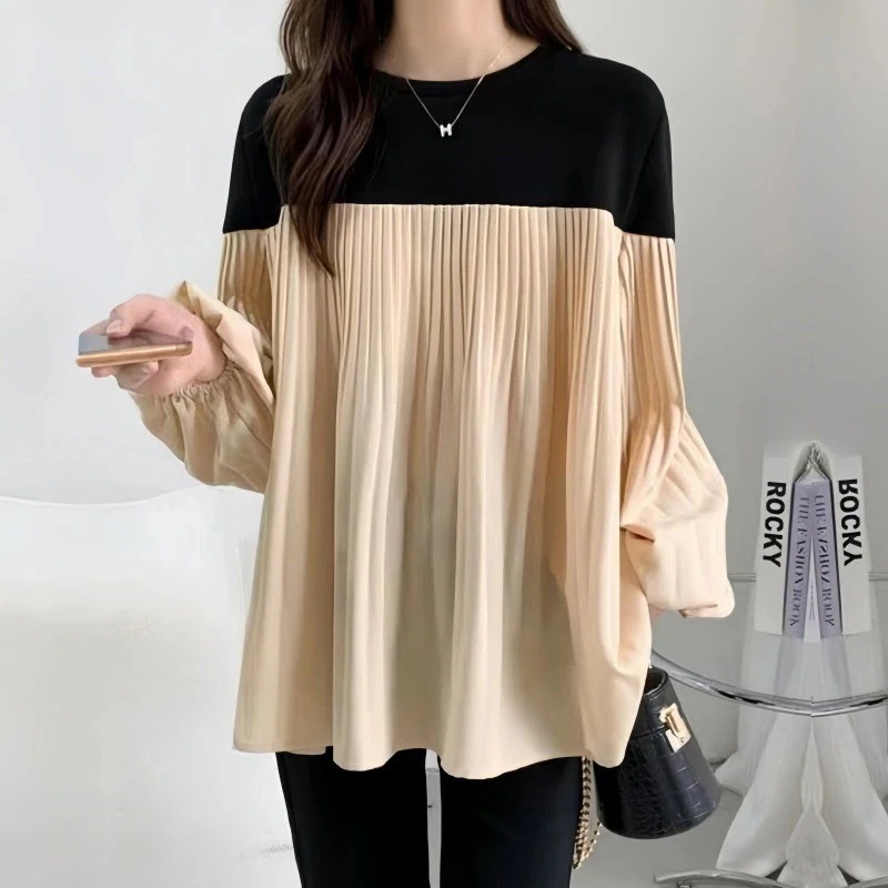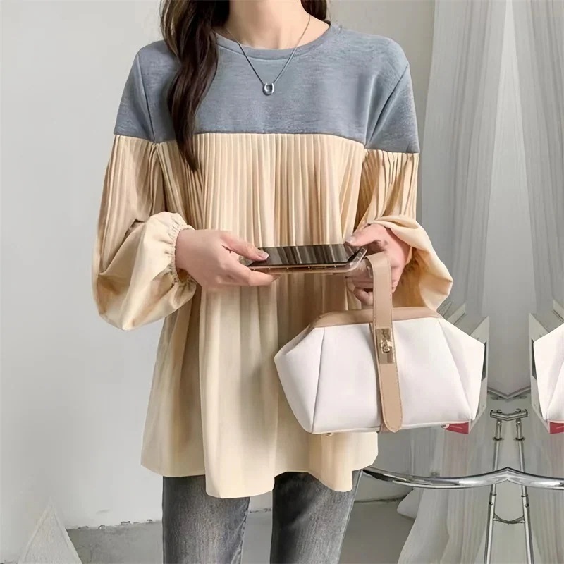 【2025春新入荷】ブラウス ギャザー トップス プルオーバー レディース ゆったりした 着痩せ 長袖 春 秋服 ラウンドネック シャーリング 透け感 シアー フリル フレア袖 ボリュームスリ