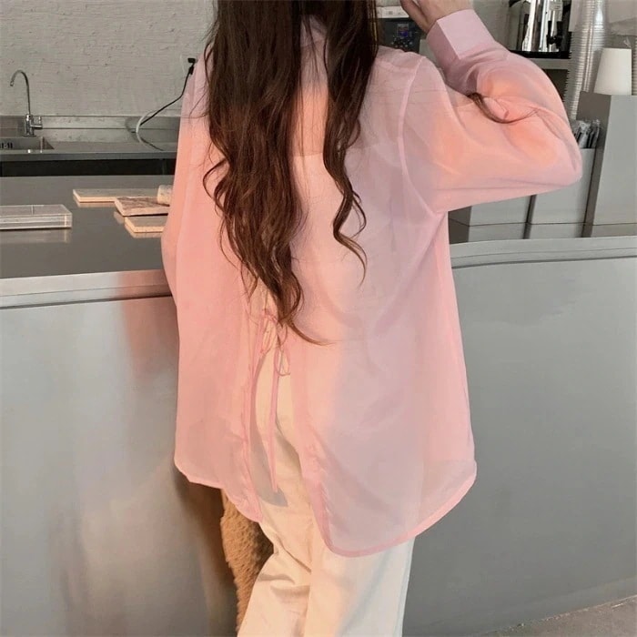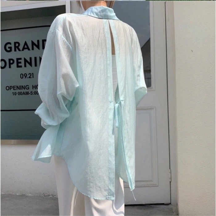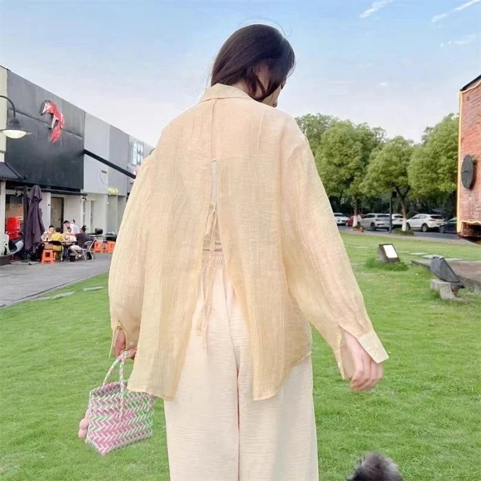 2枚1OO円OFF!緊急SALE!!![本日限定激安格]品質良い! 体型カバー 日焼け止め シアー シャツ ゆったり キャンディー 肌触り 薄手 ブラウス 長袖シャツ トップス きれいめ シンプル 夏