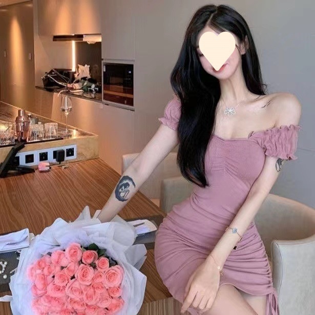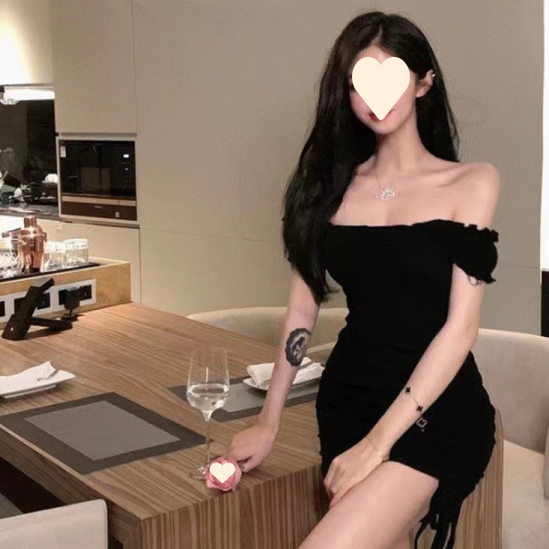 [本日限定激安格]桃 黒 灰 ワンピ レディース ルームウェア 開き 胸元 リボン ニット 肩出し ノースリーブ ワンピース ミニ タイト セクシー