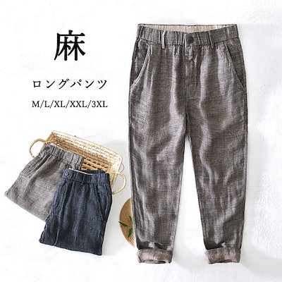 リネンパンツ メンズ テーパードパンツ カジュアル 麻パンツ 冷感 無地 九分丈パンツ シンプル 夏ファッション ロングパンツ リネン 麻100% ウエストゴム サマーパンツ 涼しい 男性 ボトムス