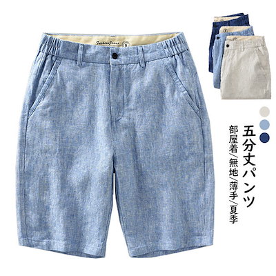 ハーフパンツ メンズ 短パンツ ショート丈 チノパン 短め 麻100% 男性 かっこいい ワイドパンツ 五分丈 リネンパンツ 無地 カジュアルパンツ 部屋着 薄手 夏用 半ズボン
