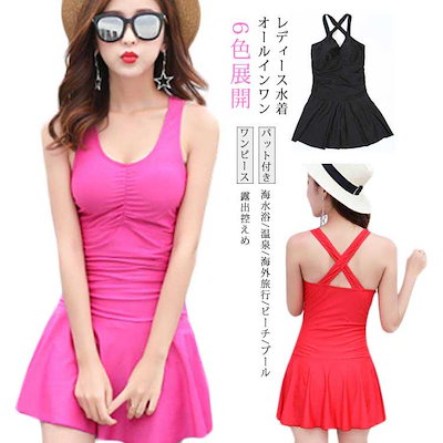 レディース水着 ワンピース 女性みずぎ 体型カバー パット付き ノンワイヤー オールインワン 連体式 ワンピ水着 大人 無地