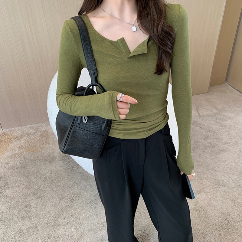 【2枚購入で2OO円OFF!!】 [今買いたいが特惠!]高弾力 シンプル フェミニン 重ね着 トップス 無地 リブ 薄手 インナー 肌着 ソフト Vネット レディースカットソー ニット ニットTシャツ