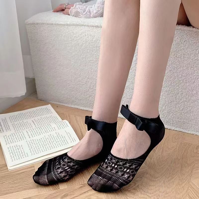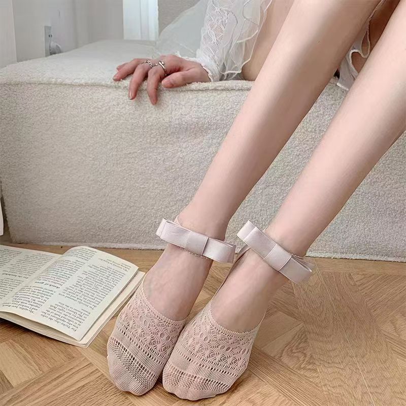 レディース 薄手 花柄レース 船型ソックス