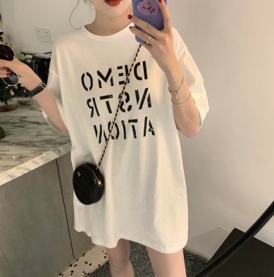 自分のサイズで買うと丈は普通のTシャツの長さだった。生地はスポーツウェアによくあるトロッと感で透けないし思ったよりよかった。部屋着か運動用ならよさげな感じ。今見たら半額程になっていた!