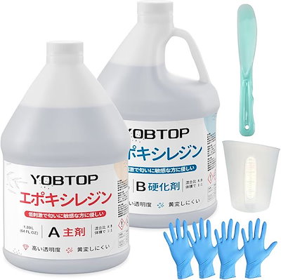 YOBTOPエポキシ樹脂 2液性レジン液 4.3kg/128ozエポキシ樹脂レジン液 ハードタイプ 大容量 体積比1:1 操作簡単 透明度が高い 高硬度 黄変しにくい 自然硬化(3784ml)