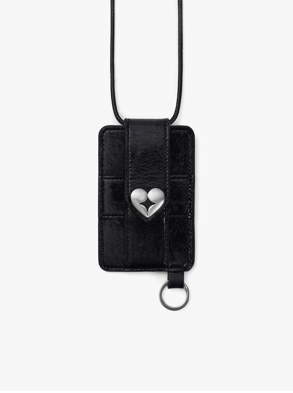 フェネックHEARTY STRAP CASE - BLACK / 長さ調節ができるネックタイプのカードケース