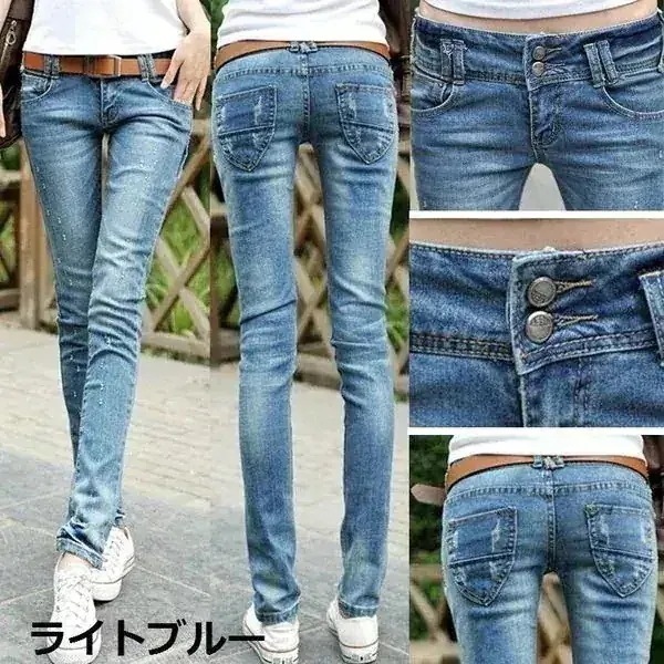 2枚購入で 2oo円FF!レディースデニムパンツスキニーパンツストレッチジーンズダメージロング丈ジーンズ美脚ローライズボト