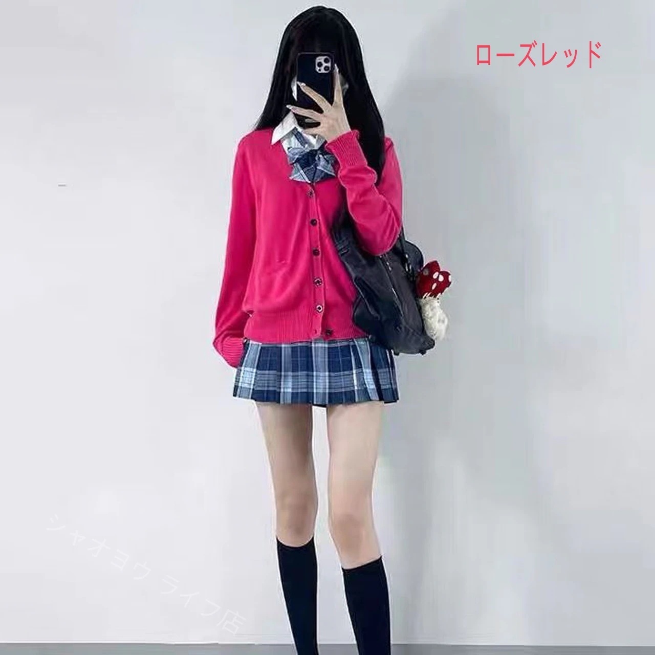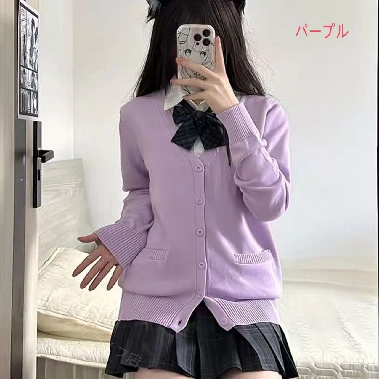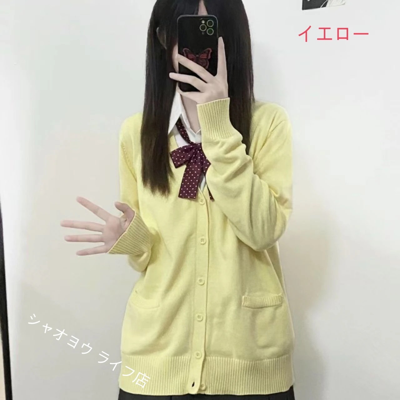 2枚購入で 2oo円FF!ニットカーディガン 制服 ニット カーディガン ネック 女子高生 レディース ボタンカーディガン スクール風 コーディガン ライトアウター 爽やか おしゃれ ワインレッド イ