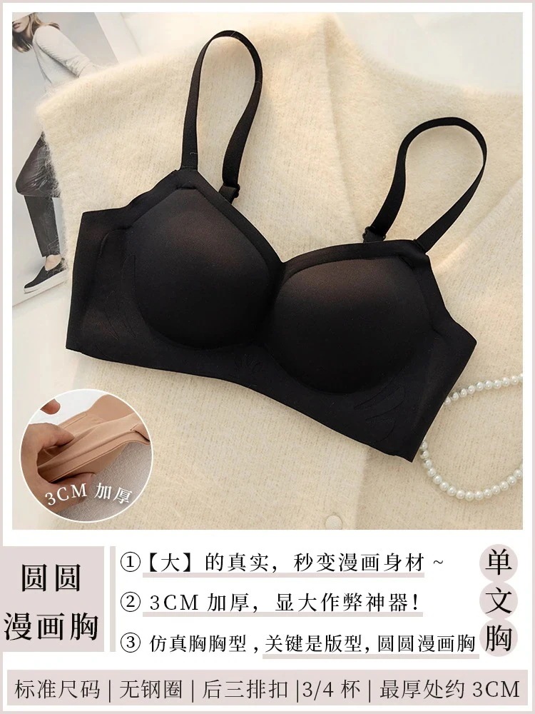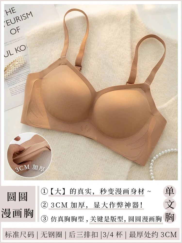 コミック豊胸下着レディース増厚ギャザー胸大きく見せるノースチールリングブラ小胸フラット胸特殊ブラ