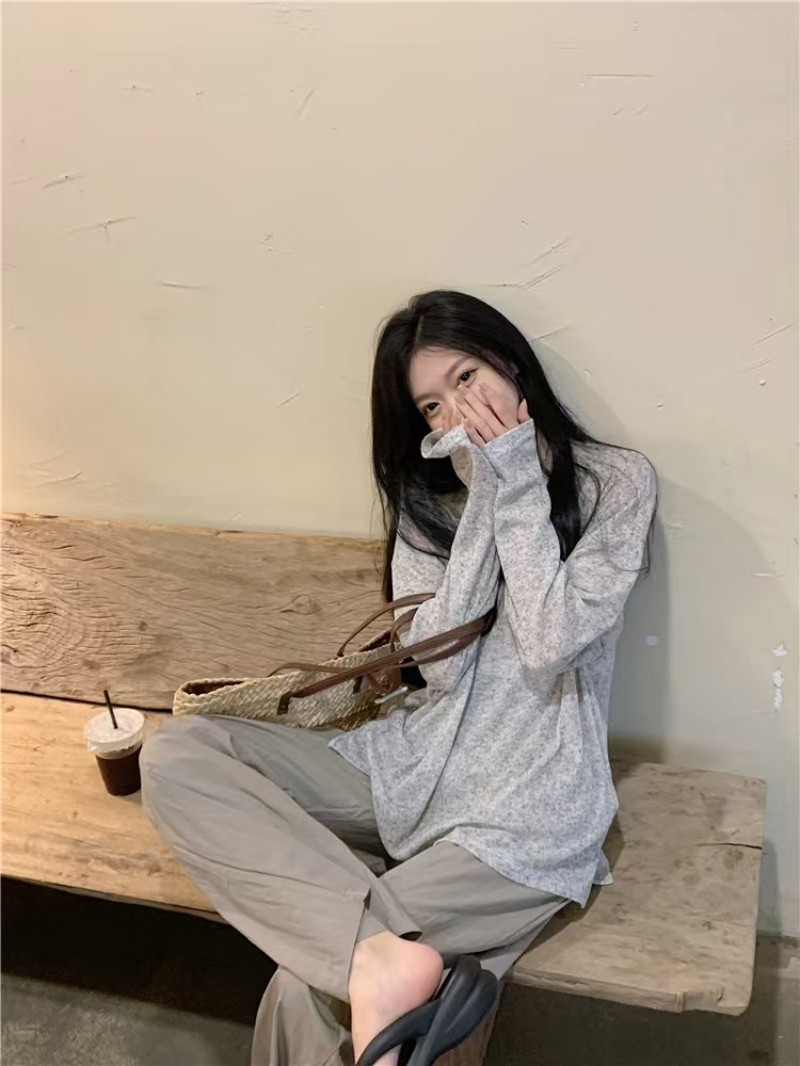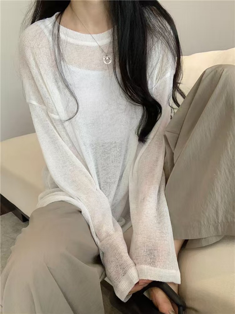 薄手ラウンドネック長袖Tシャツ ゆったり夏用カジュアルトップス